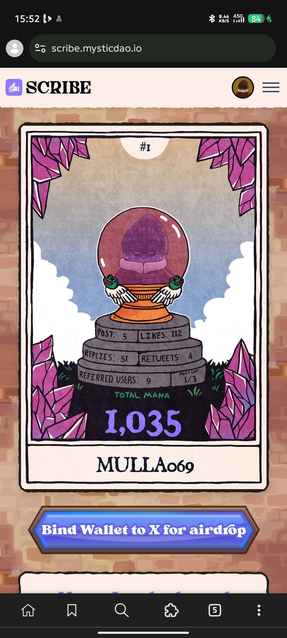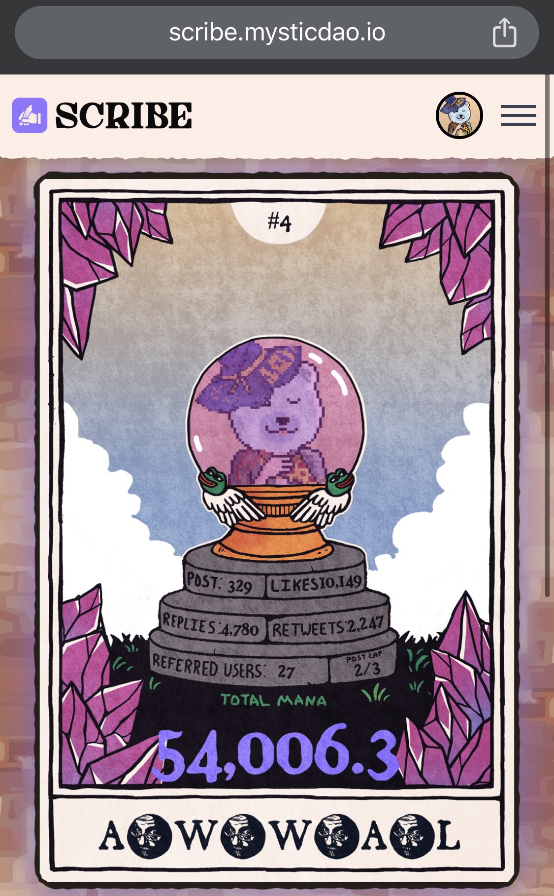 Finally hit 4 figure Mana point on @MysticDaoSol . Road to 10k Mana before TGE ? https://t.co/kZwh3vGNLR