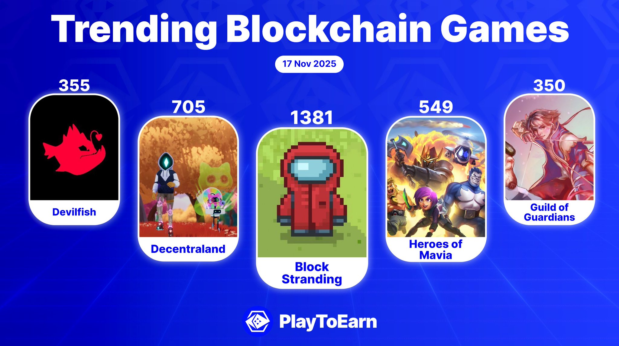 What blockchain games will you be playing this week? Below are among 5 of the hottest picks on PlayToEarn that are trending 🔥 👉@blockstranding 👉@decentraland 👉@MaviaGame 👉@DevilfishPoker_ 👉@GuildOfGuardian 📊 Ranked by P2E score Find more: https://t.co/fAJlMIfgh7 https://t.co/9uu5aAlbrQ