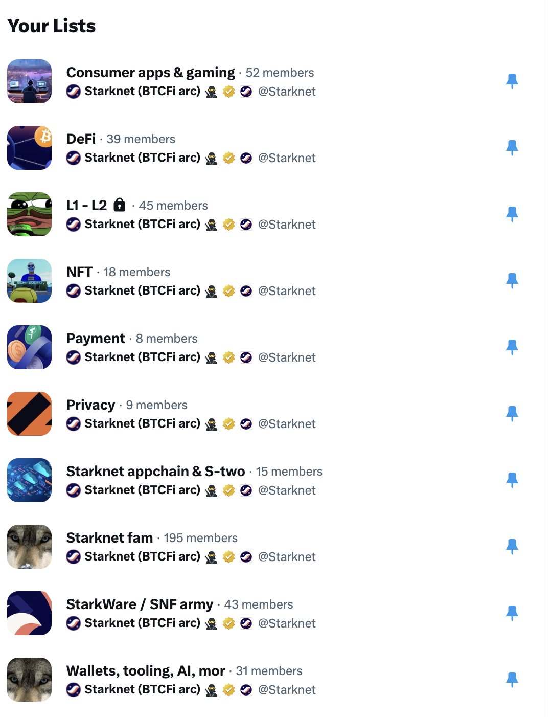 I spent my day sorting and creating these lists to help you better follow the Starknet ecosystem. If I missed anyone, feel free to bully me here or in DM, and I will add. P.S. I didn't include most projects that haven't tweeted for months. https://t.co/5EaKLUg1sA