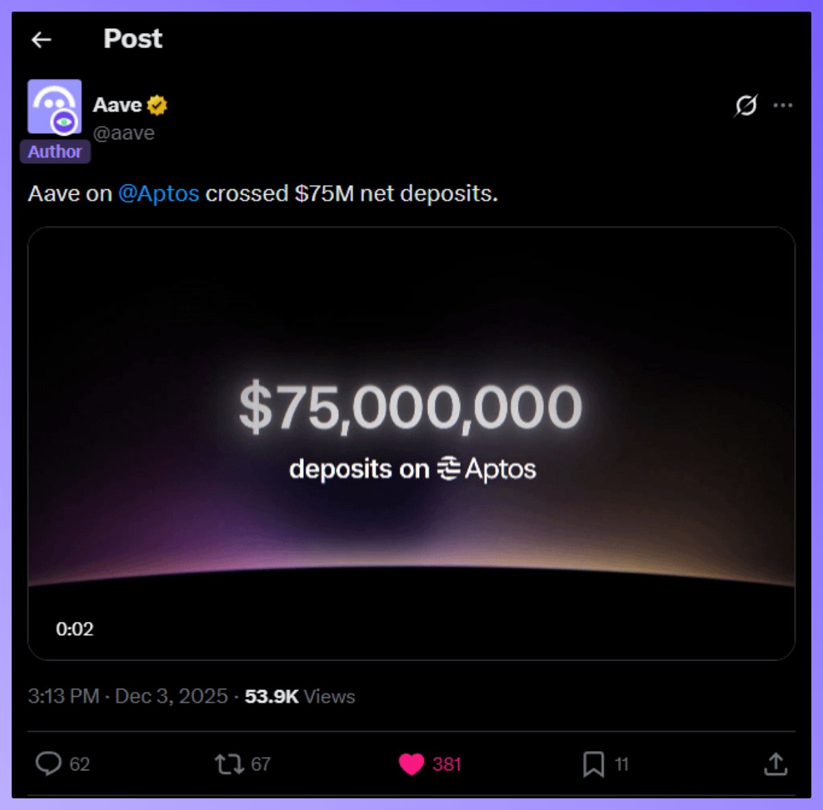 Aptos Media DeFi_Expert C654.98K @Aptos12 6 265 Original >Trend of AAVE after releaseBullish- Trend of AAVE after releaseBullish