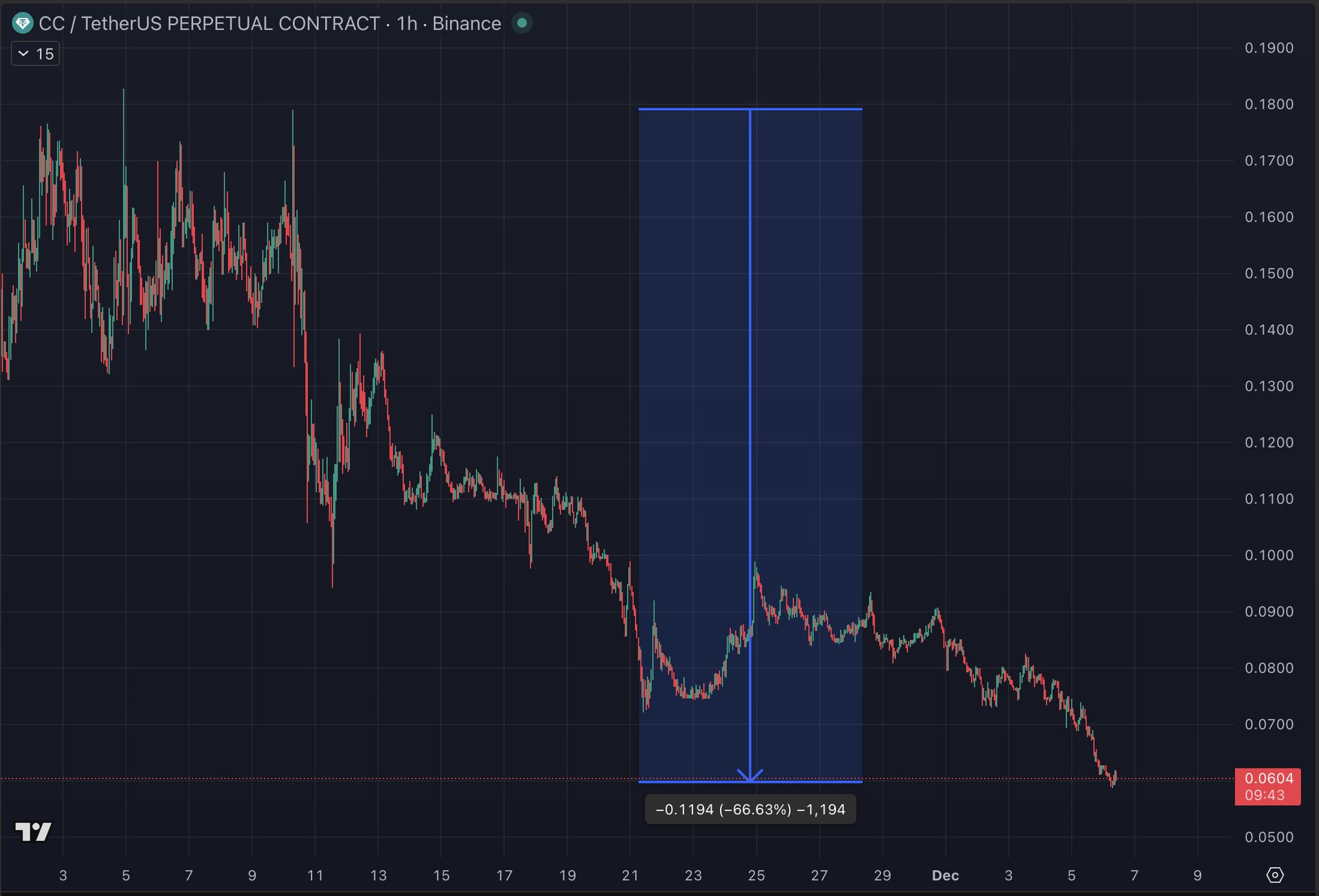 VIKTOR Trader Tokenomics_Expert B59.80K @thedefivillain17 8 3.35K Original >Trend of CC after releaseExtremely Bearish