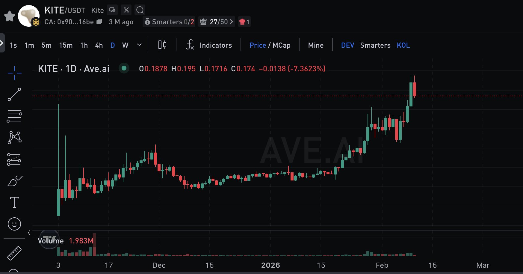BS recommended project continues to rise 📈 The project recommended in Issue #91 on January 28, $KITE, was priced at $0.126 at the time of recommendation. Today, it reached a high of $0.195, with a maximum gain of +54.8% 💰 Amid a market downturn and weakened sentiment, we remain committed to identifying true Alpha. Even in the cold winter, there are still those who break through; Even in a downtrend, opportunities still belong to a select few. Alpha always belongs to those who keep exploring. #KITE #Crypto #Alpha #Web3
