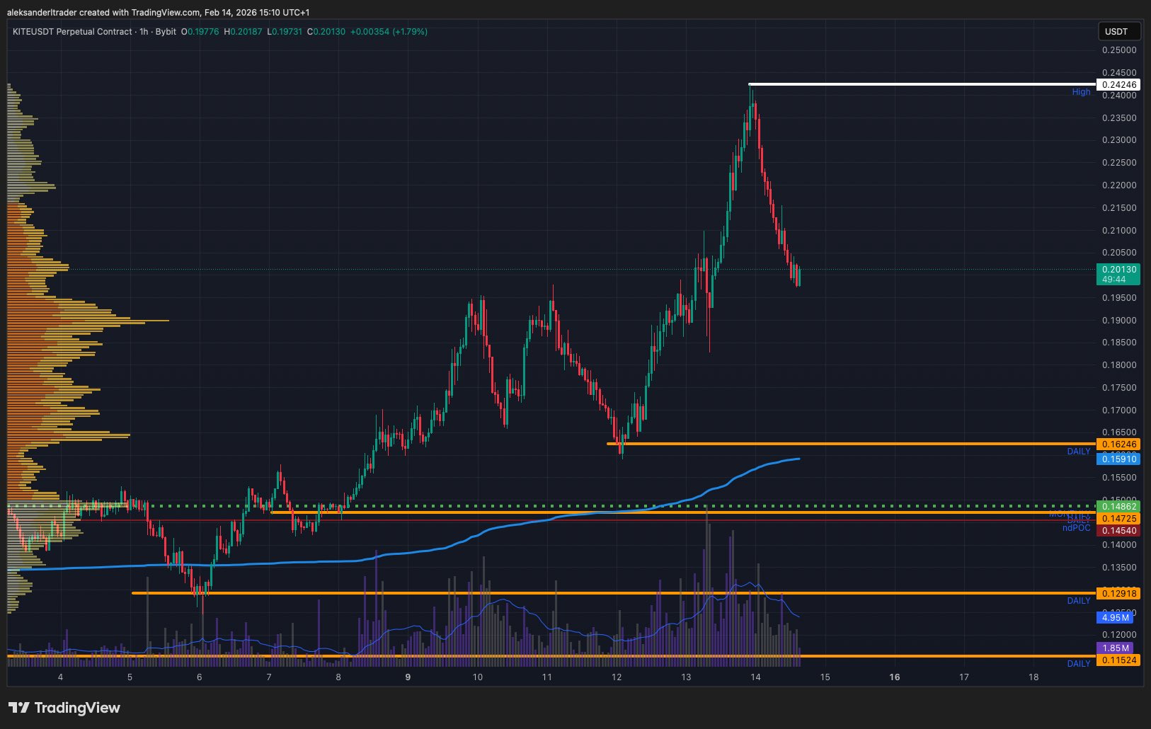 KITE experienced extreme volatility this week, with a sharp price rise followed by a pullback, and the author asks if others have participated in trading.