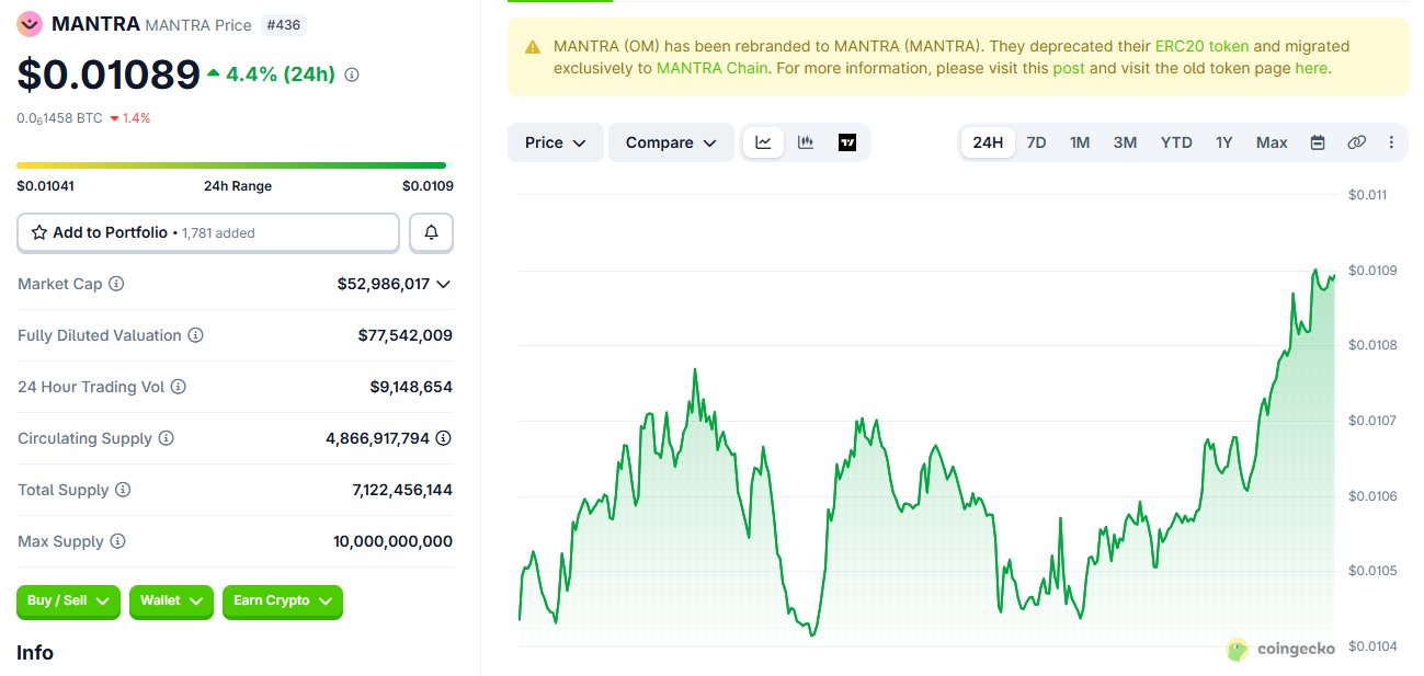 OMies 🏡 D12.12K @OnchainOMies33 5 867 Original >Trend of MANTRA after releaseNeutral