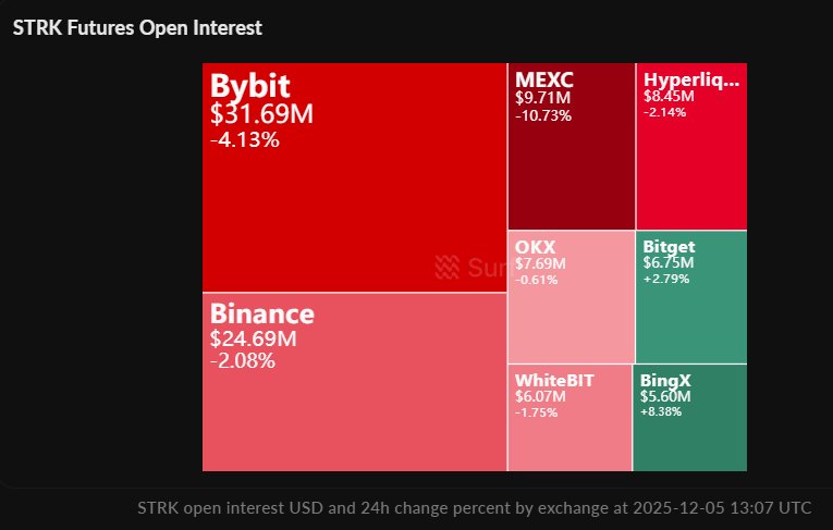 STRK faces massive selling pressure due to large token unlocks and bearish technical indicators, with liquidation risk.