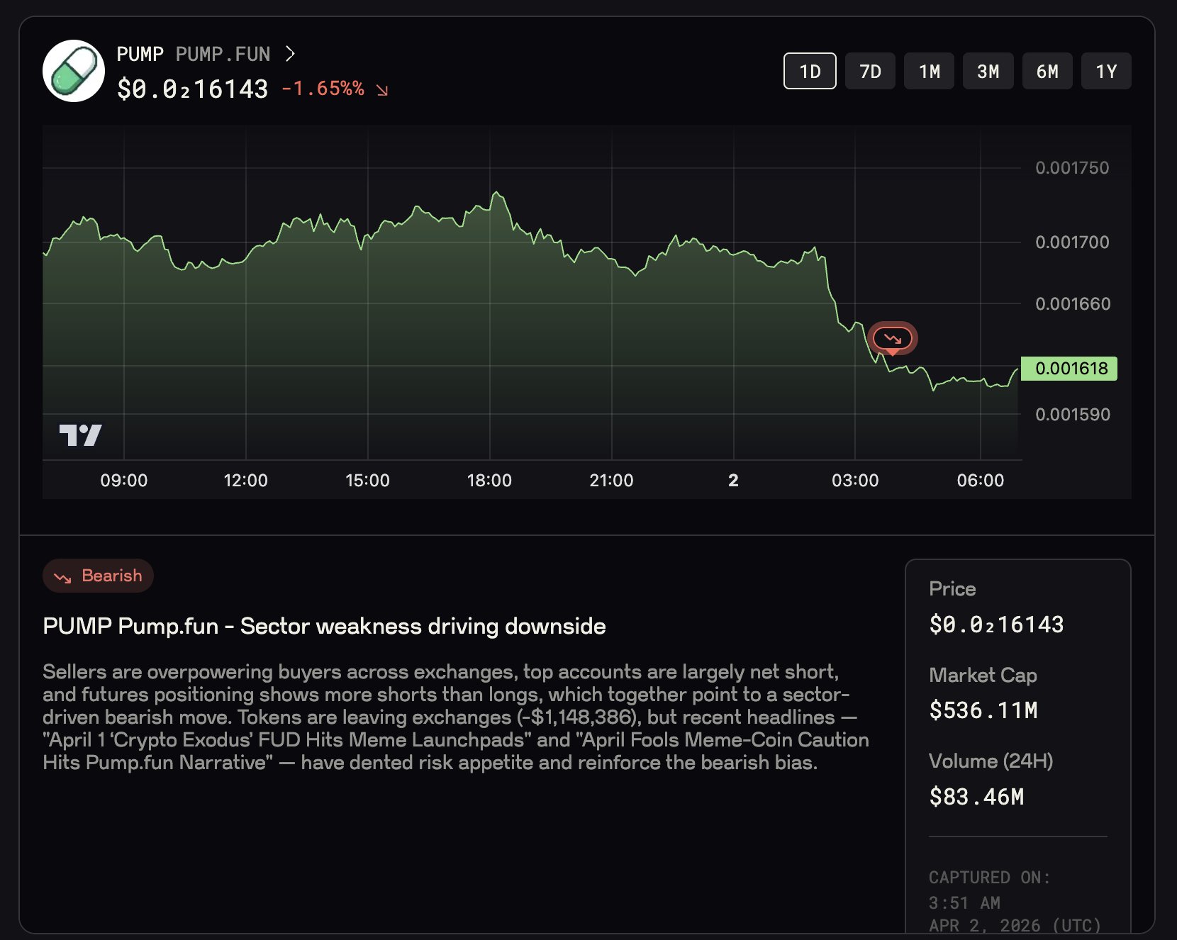 6 1 85 Leer original >Tendencia de PUMP tras el lanzamientoExtremadamente bajista