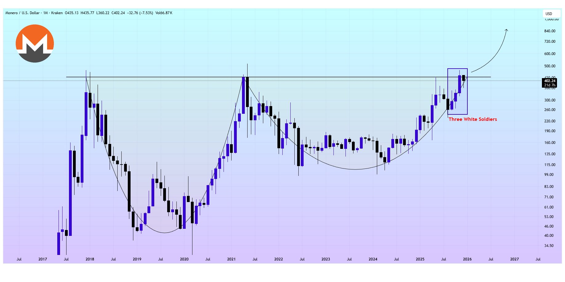 - Tendencia de XMR tras el lanzamientoExtremadamente alcista