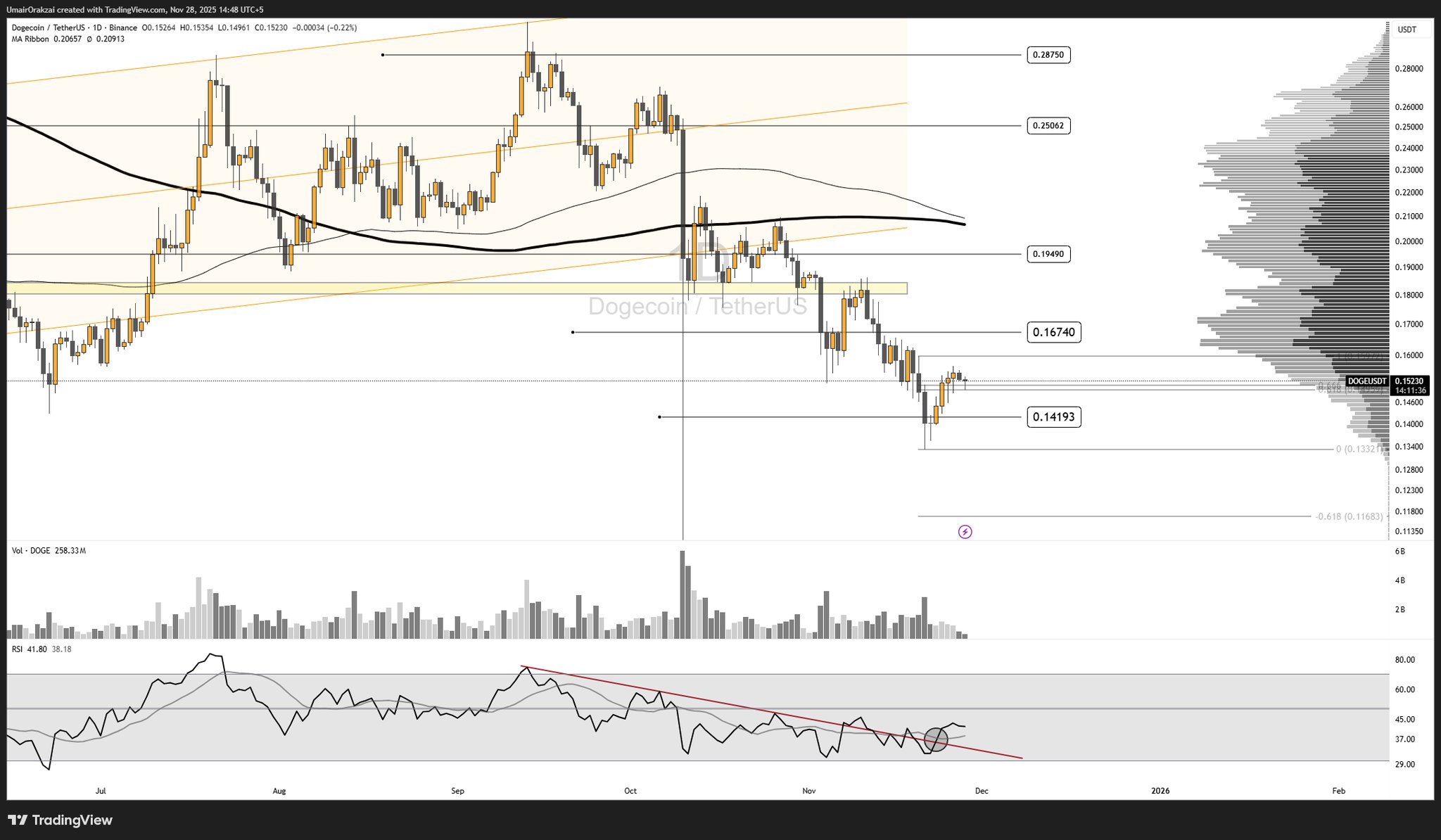 - روند DOGE پس از انتشارنزولی