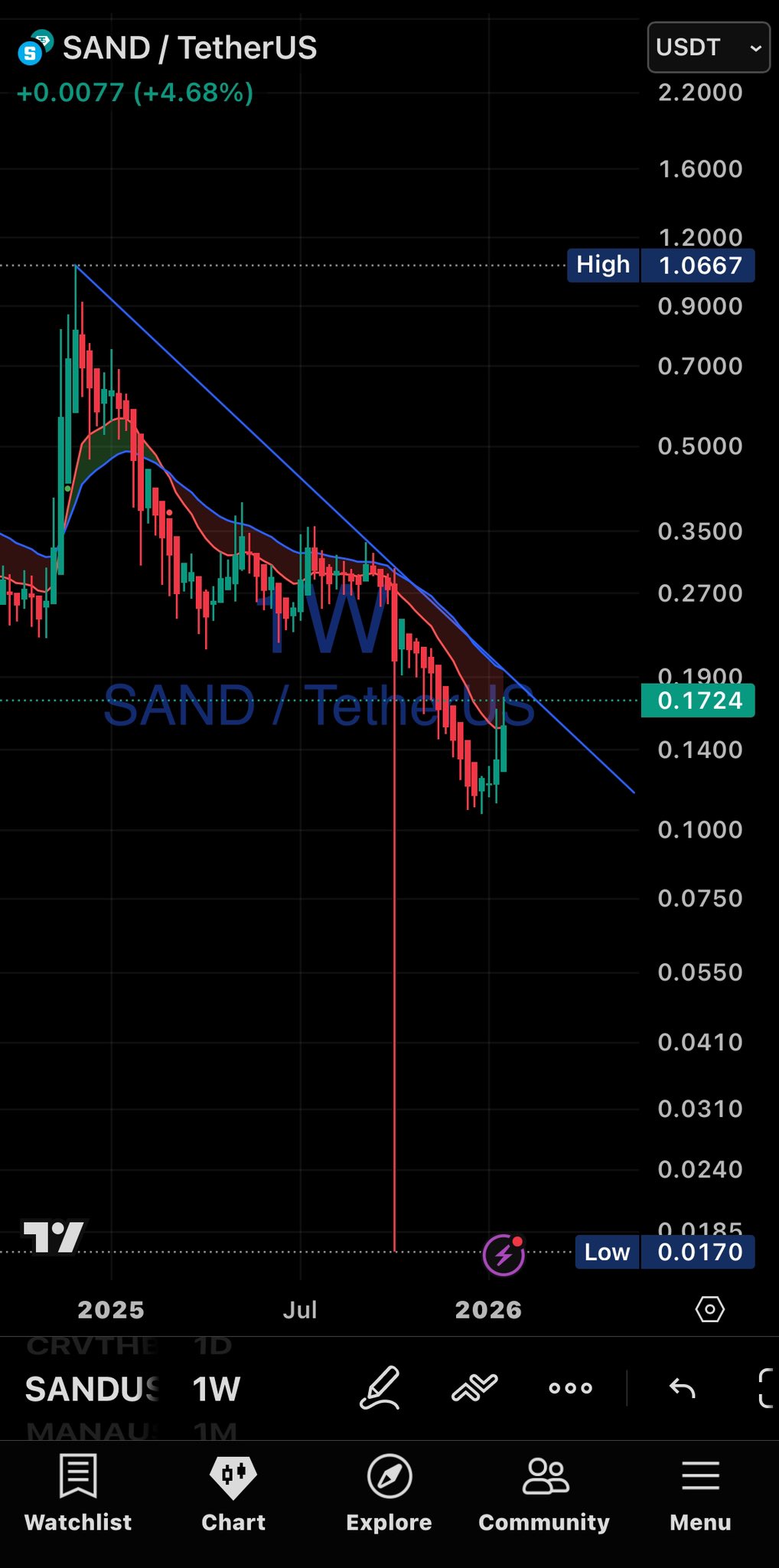 PlayToEarn Media Researcher B81.72K @PlayToEarn39 1 5.98K オリジナル >リリース後のSANDのトレンド非常に強気- リリース後のSANDのトレンド強気