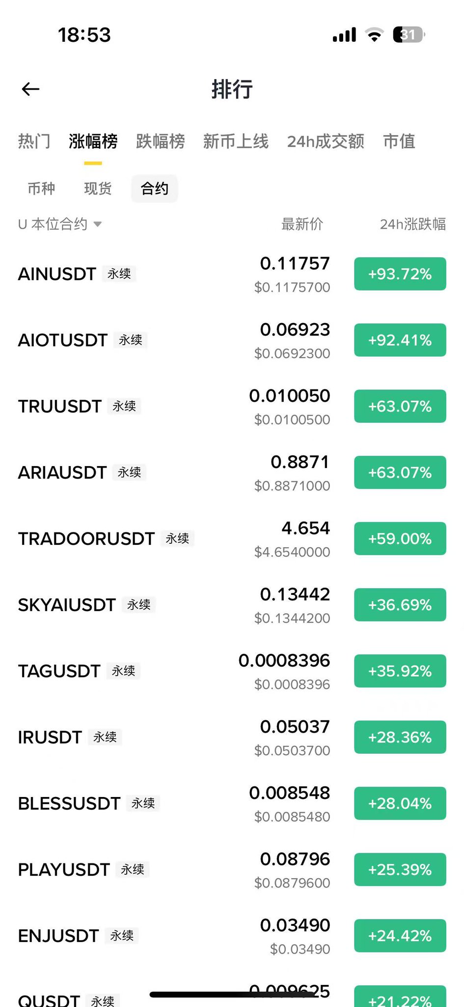 Today's futures gain leaderboard is quite interesting.