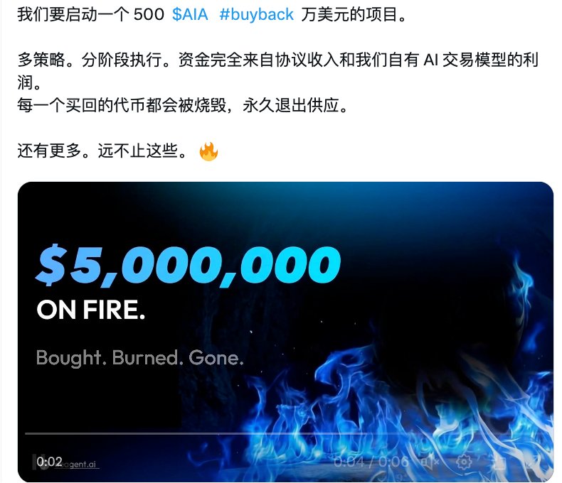 $AIA, a dog‑pump coin, once had a glorious run; now the team is launching a $5 million buyback project, and it’s not easy to start a buyback in this cycle.