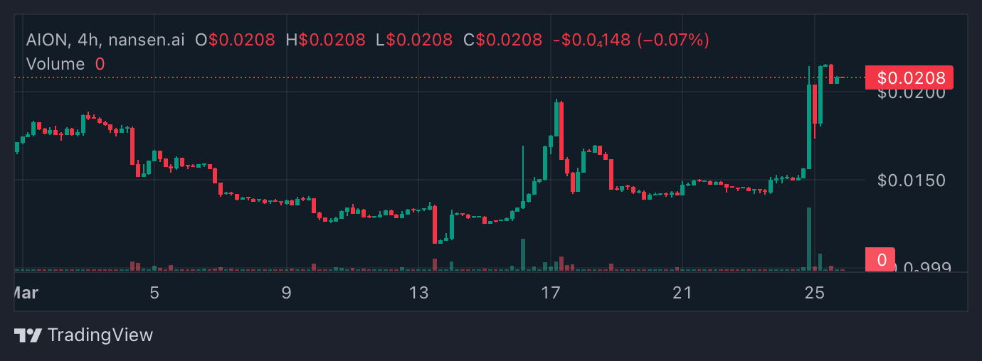 On-chain data for AION shows inflows and accumulation; the price has risen 42% recently, and its potential is undervalued.