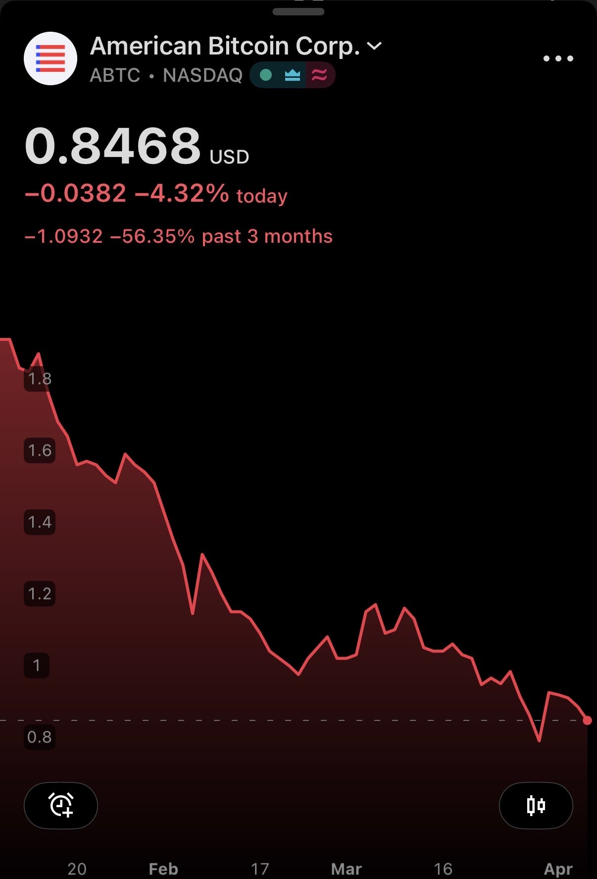⛔️Trump-family run $ABTC has fallen under $1, putting it at risk for NASDAQ delisting.