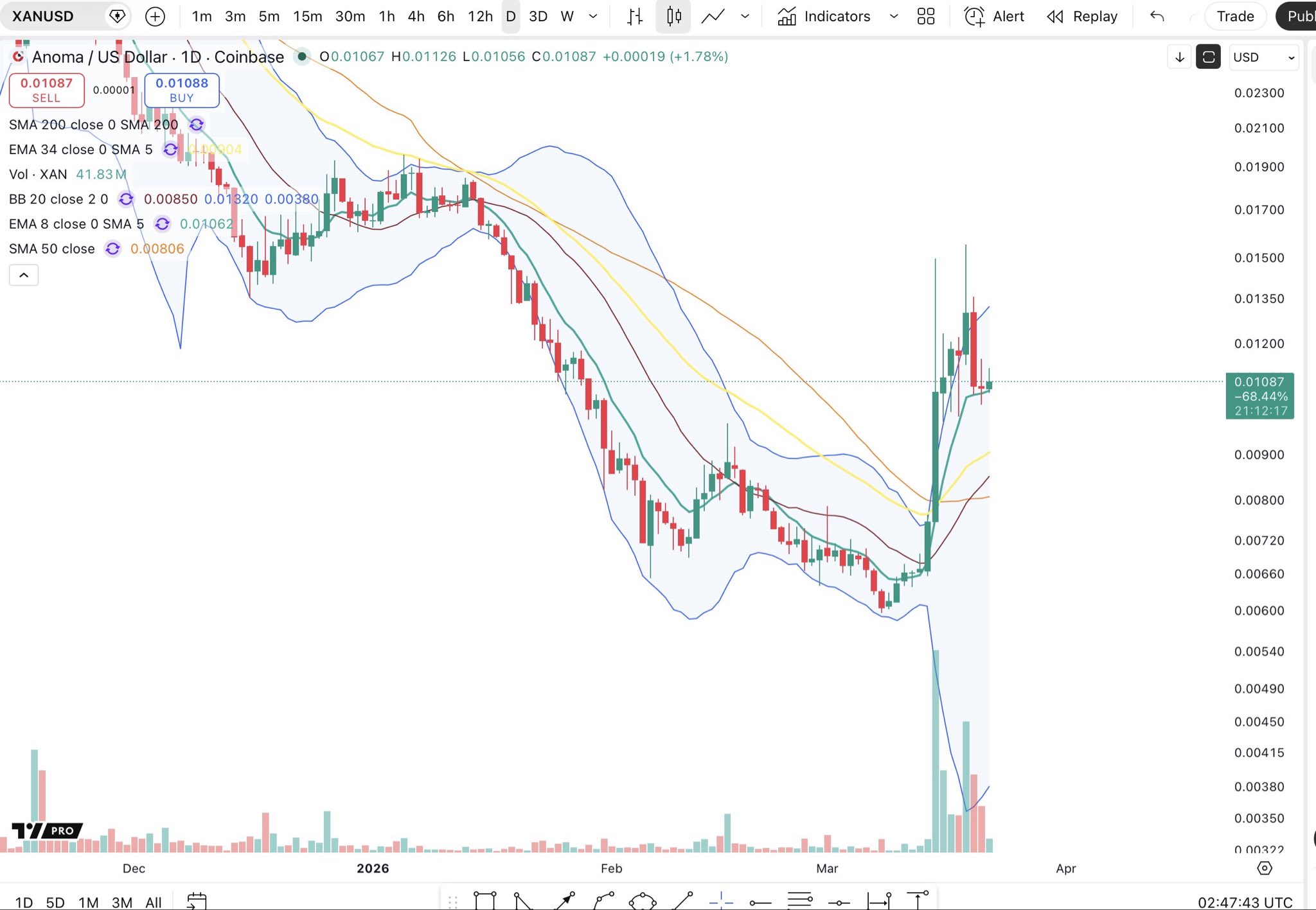 $XAN | Short | Entry Zone: $0.0105-$0.0115 | Target: $0.0080 | Stop Loss: $0.0130