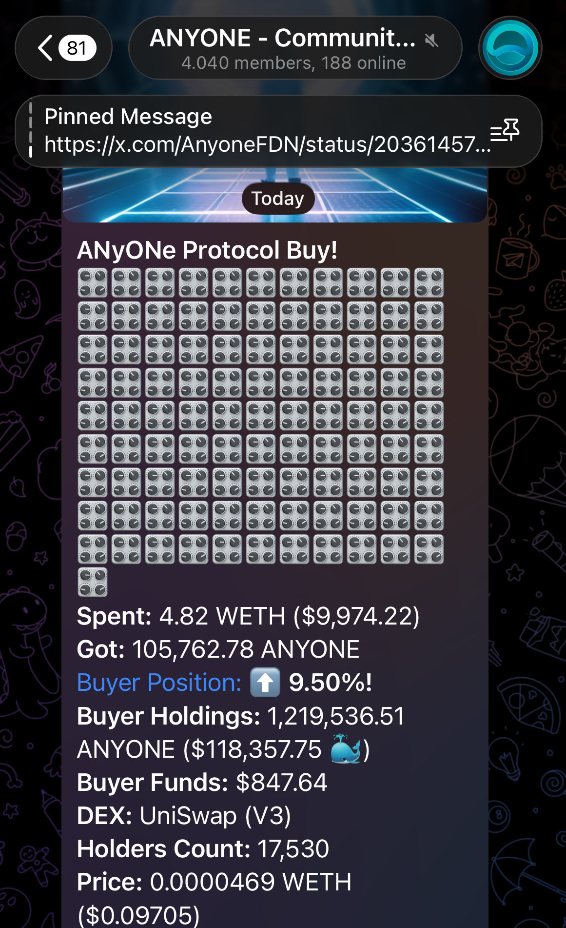 Another wallet, which made its first purchase 624 days ago and has never sold, just added another five-figure amount to its position despite being down 6 figures. Its total holding now amounts to $106K in $ANYONE tokens, representing 11% of the wallet’s current total value of $971K.