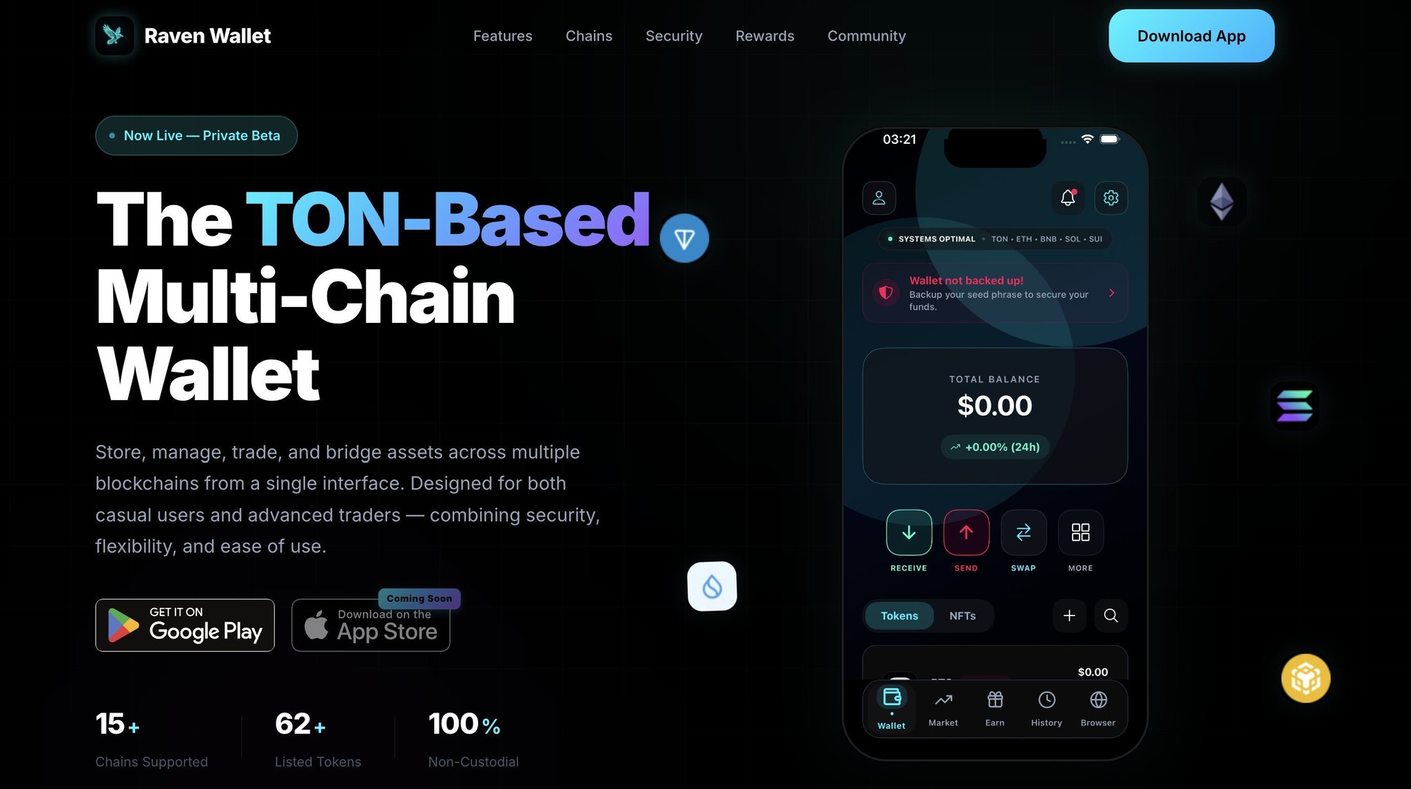 Raven Wallet website is live, as a TON multi‑chain wallet supporting ETH, BNB, SOL, SUI, etc., a significant step for the ecosystem.