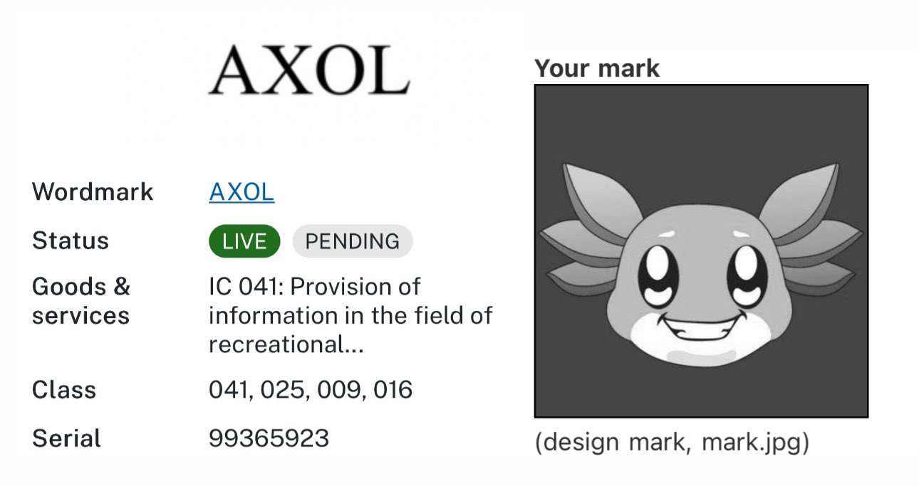 Emphasizes the need for the AXOL project to continue building discreetly and showcases its trademark registration status.