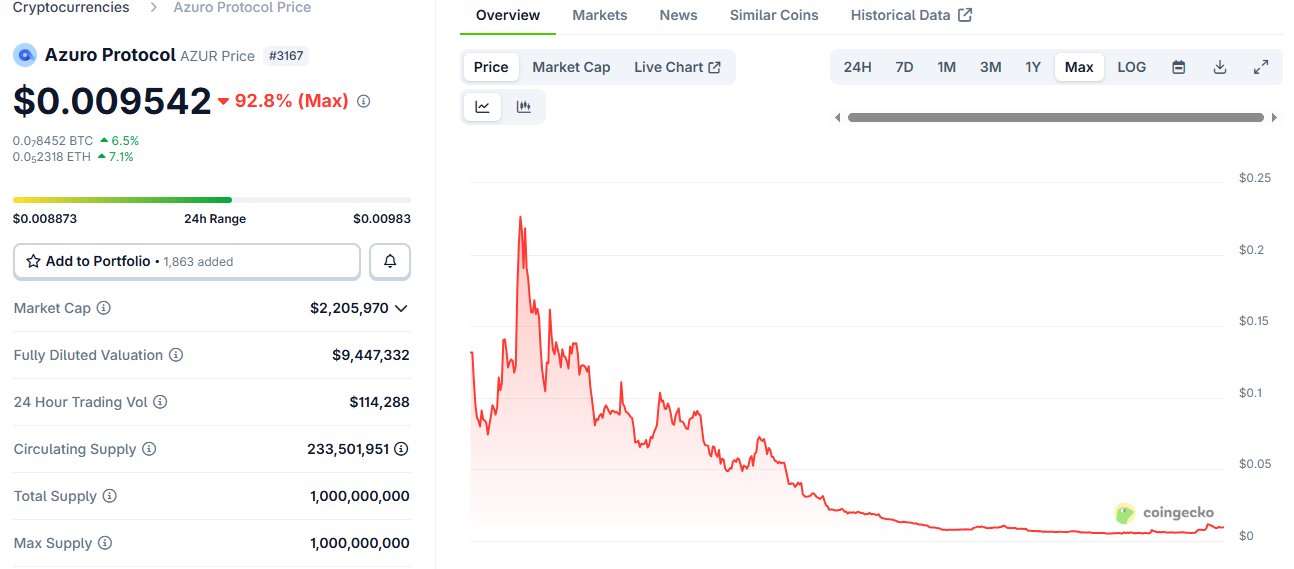 Azuro Protocol AZUR Price History USD