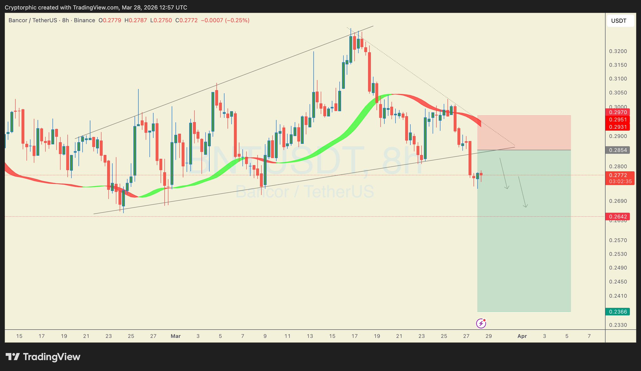 Next levels to watch: $0.264 → $0.236.