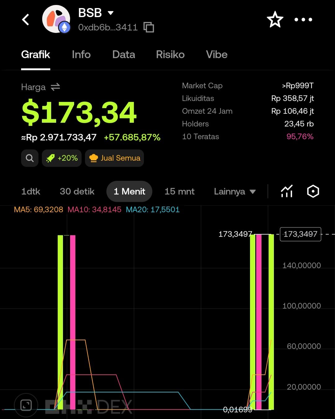 The price of BSB token surged over 57,000%, shocking users with the astonishing increase.