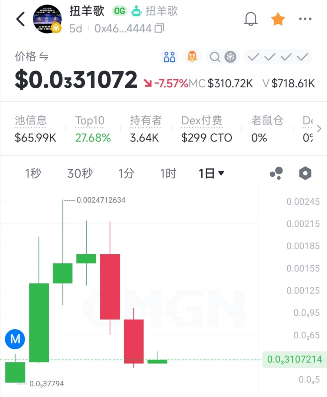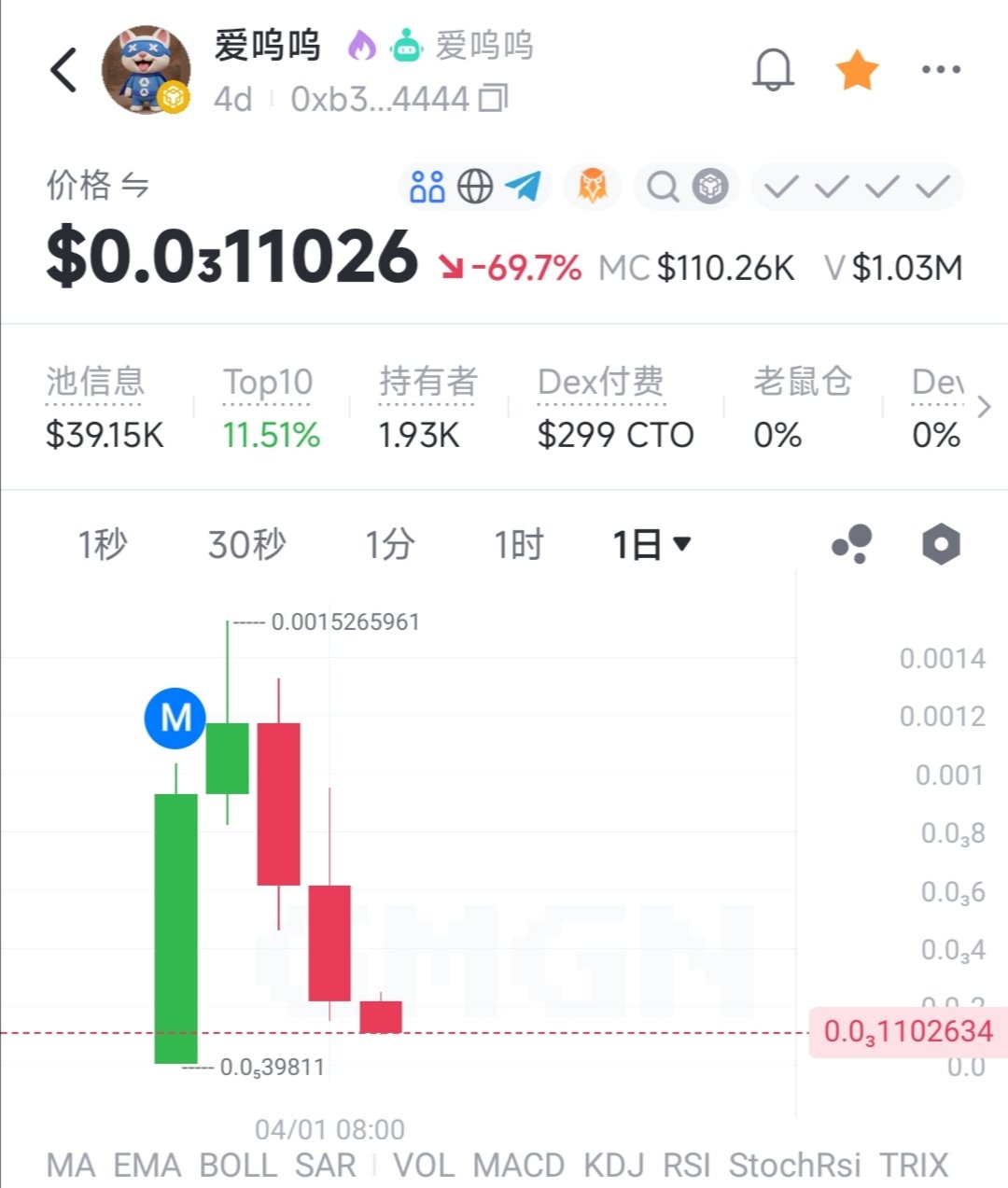 #爱呜呜 over 1 million market cap, down 90% in three days