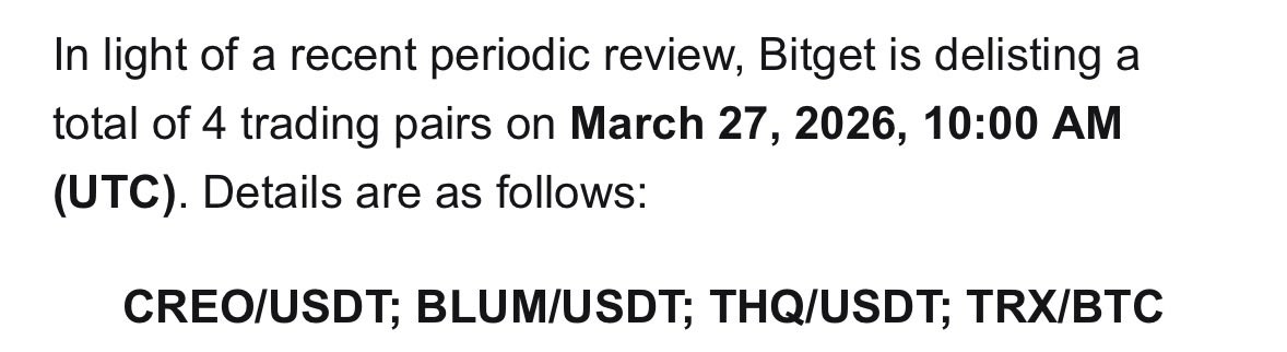 > Bitget has announced the delisting of $BLUM https://t.co/nWJbTLDuyL