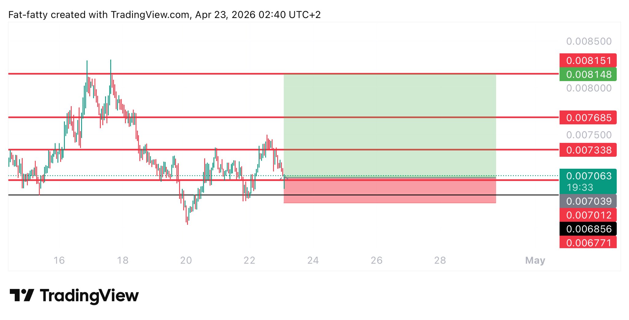 I am watching for a break and retest of red zone (0.0075 - 0.0074) for continuation. https://t.co/MbbOlXXBRv