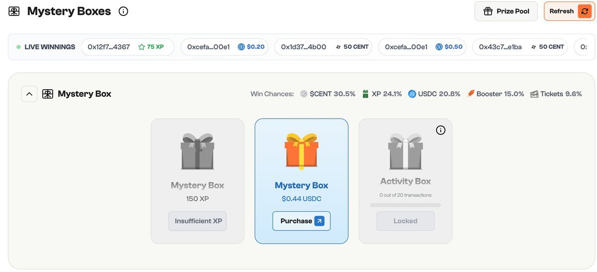 After the mainnet launch, there are some new badges, and a new mystery box option that can contain $cent tokens.