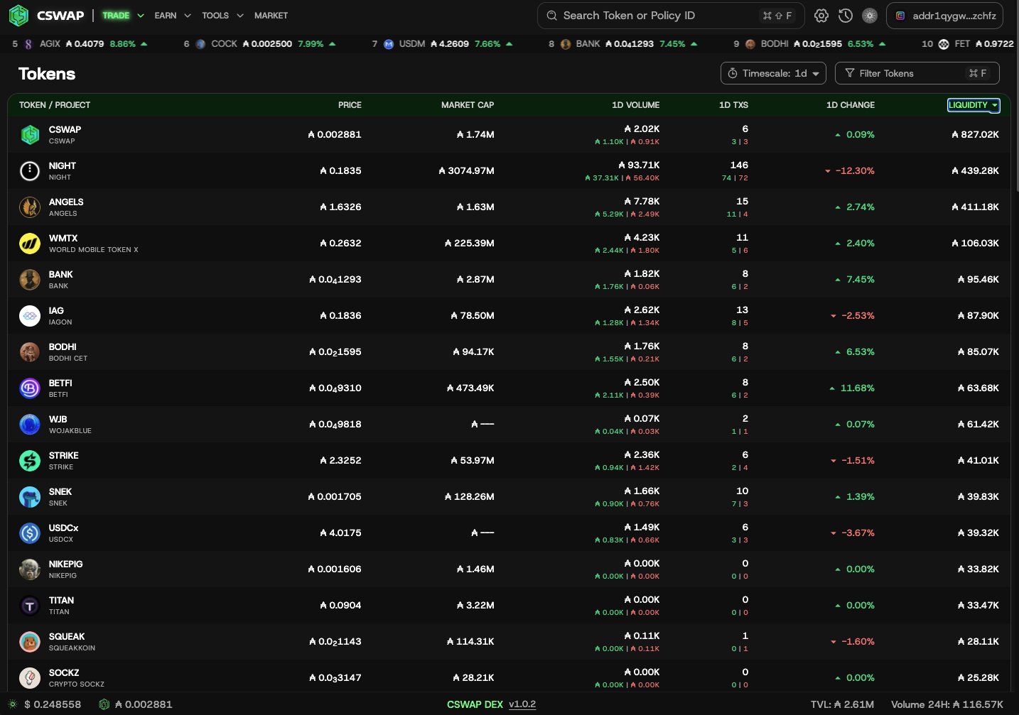 CSWAP ranked #2 among the most active trading wallets over the past 30 days.