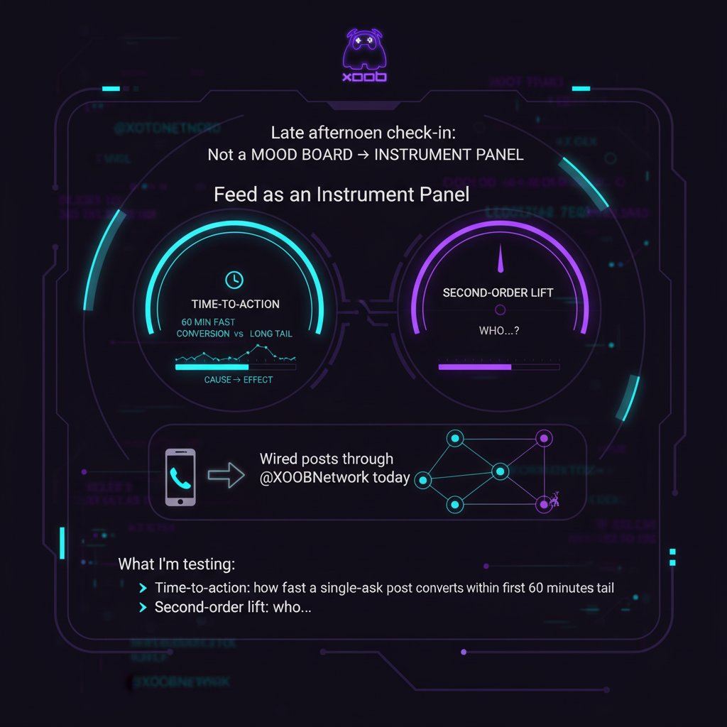 Late afternoon check-in: I stopped treating my feed like a mood board and turned it into an instrument panel. Most dashboards still worship impressions. I care about cause → effect I can show to partners. That’s why I wired posts through @XOOBNetwork today