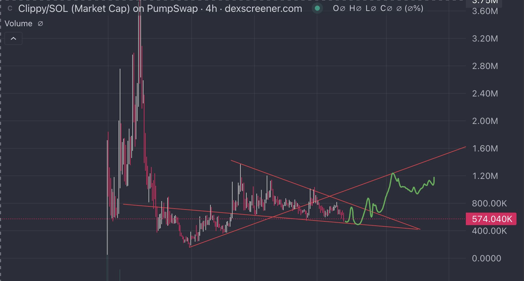 Clippy price is falling due to the X account suspension, chart predicts it will break out of consolidation and surge sharply.
