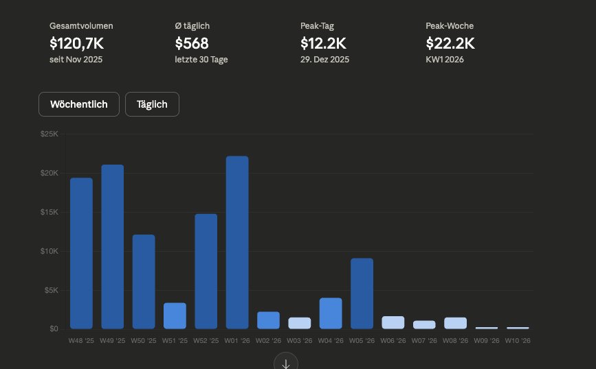 Total processed volume since November 2025: ~$120k.
