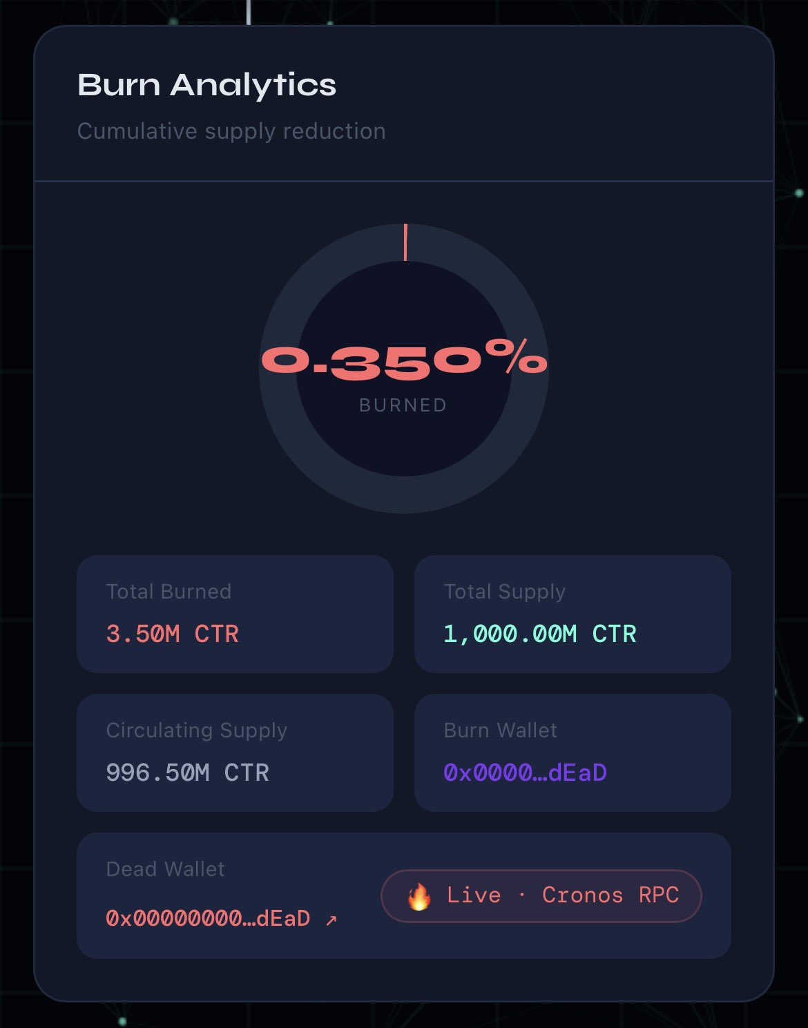 Cronos Treasury announces its first buyback and burn of 2,000,000 CTR, generating positive market attention.