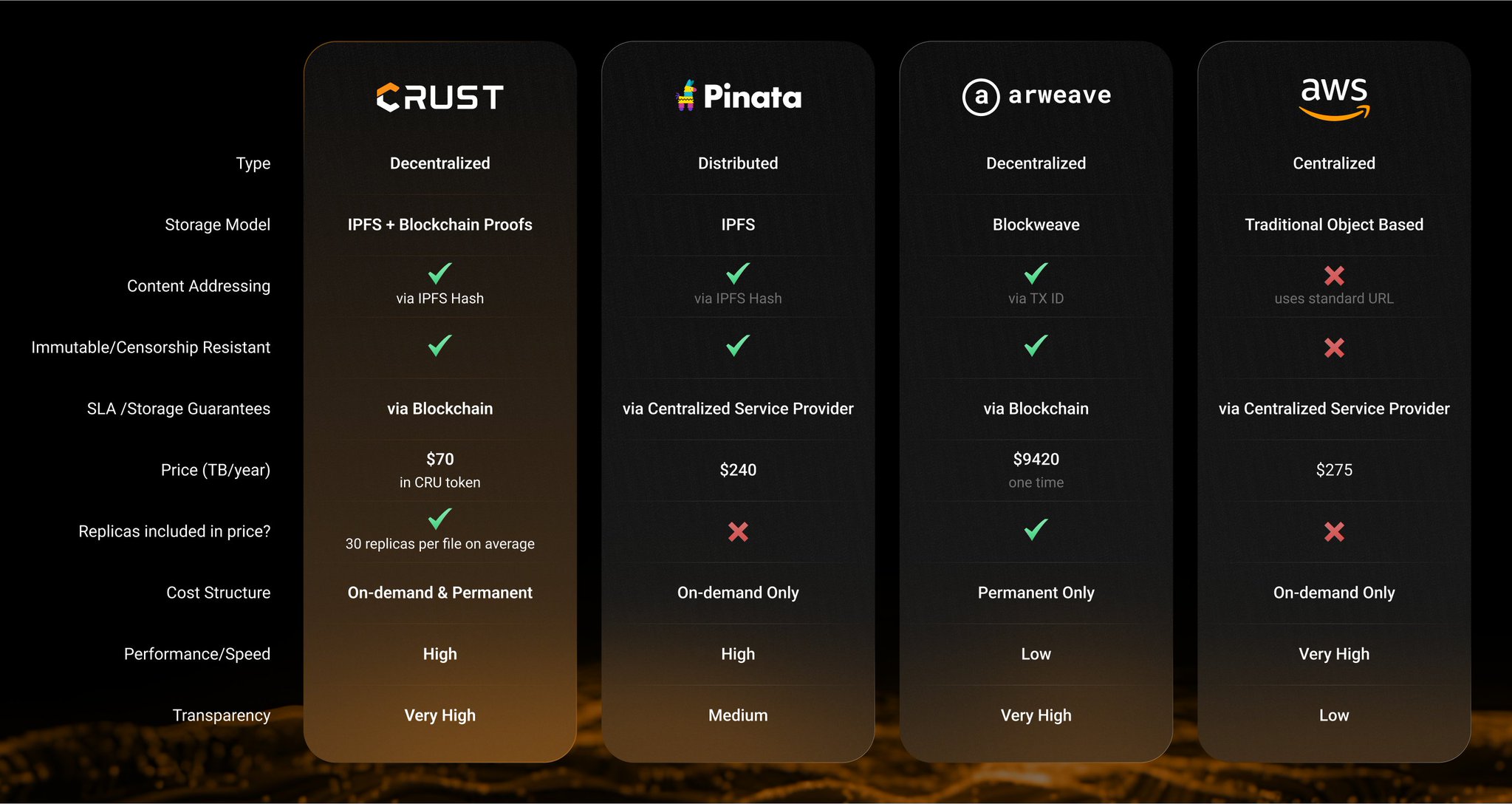Crust Network is exploring integration with Hedera, with its decentralized storage solution being competitive in price and functionality.