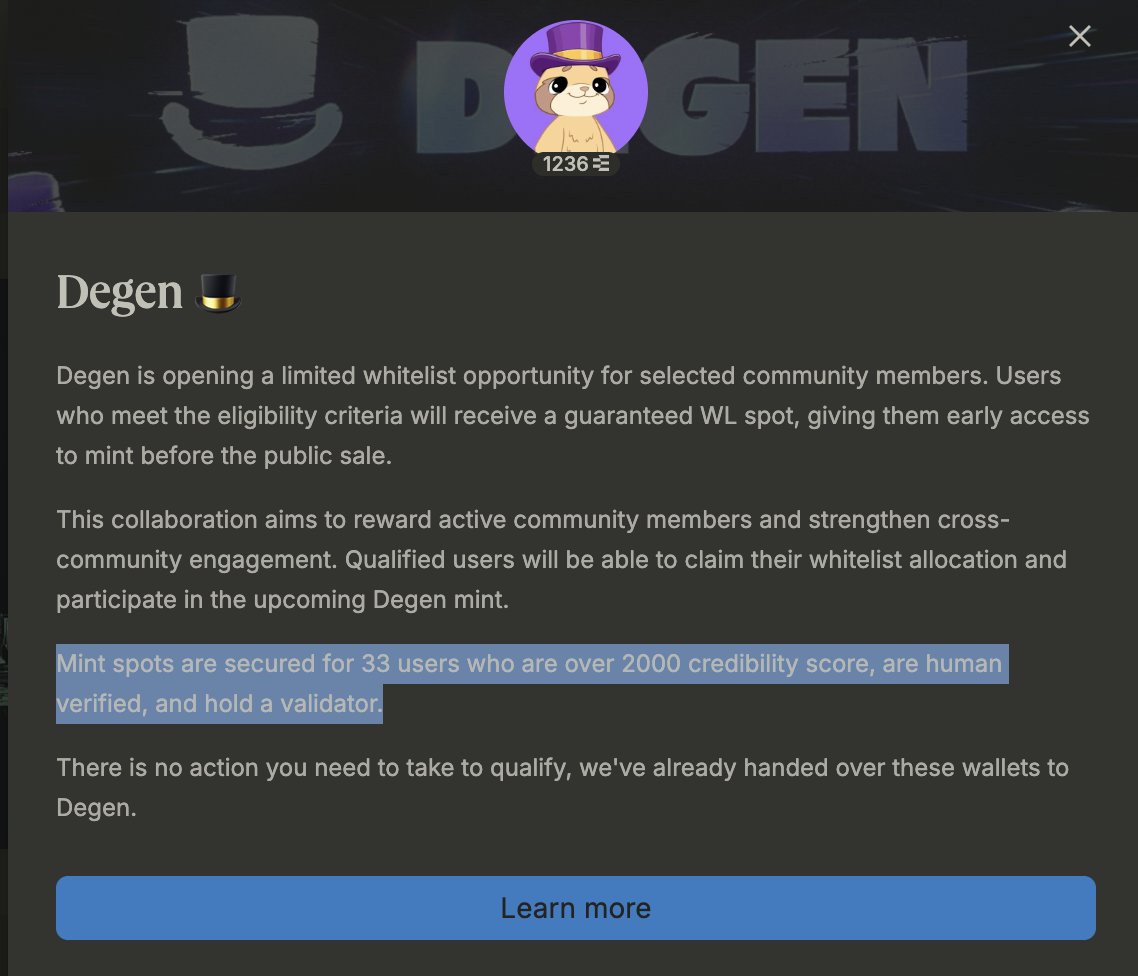 if you had over 2000 @ethos_network score you got a @degentokenbase whitelist (total value: $270) but you needed to be on opensea to mint then