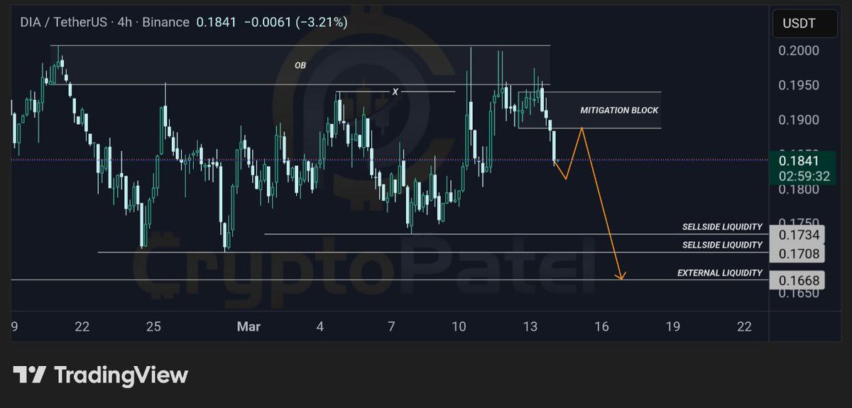 DIA/USDT is Retracing Toward the $0.1890 Mitigation Block, Where Smart Money May Reload Shorts.