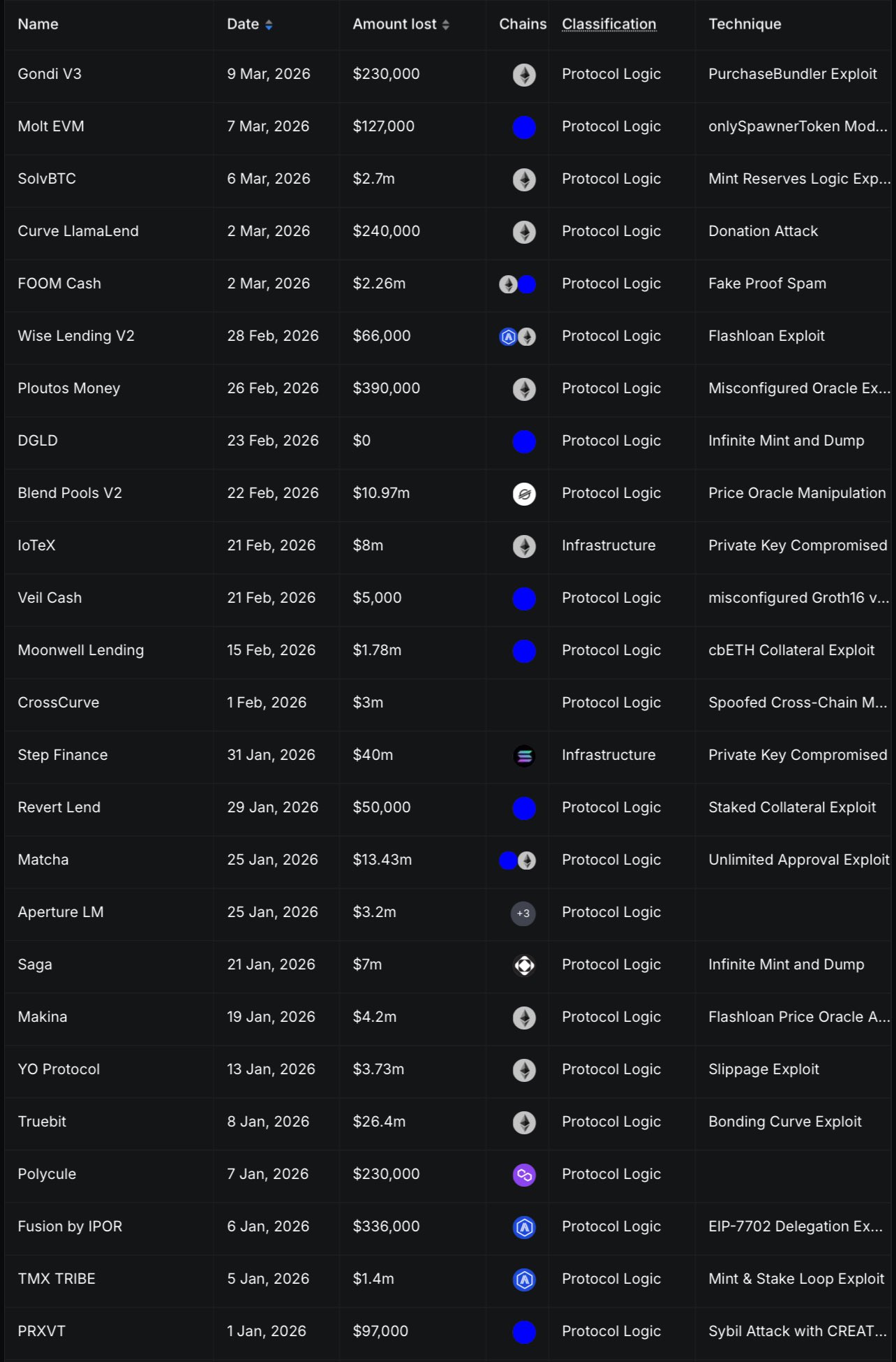 Protocol exploits in DeFi over the past month
