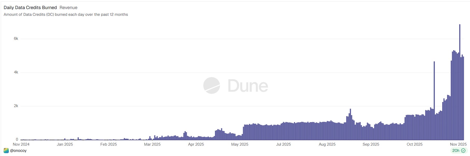 ▪️ The public Dune dashboard is one of the strongest indicators. The daily burned data credits show exactly how actively the system is being used.
