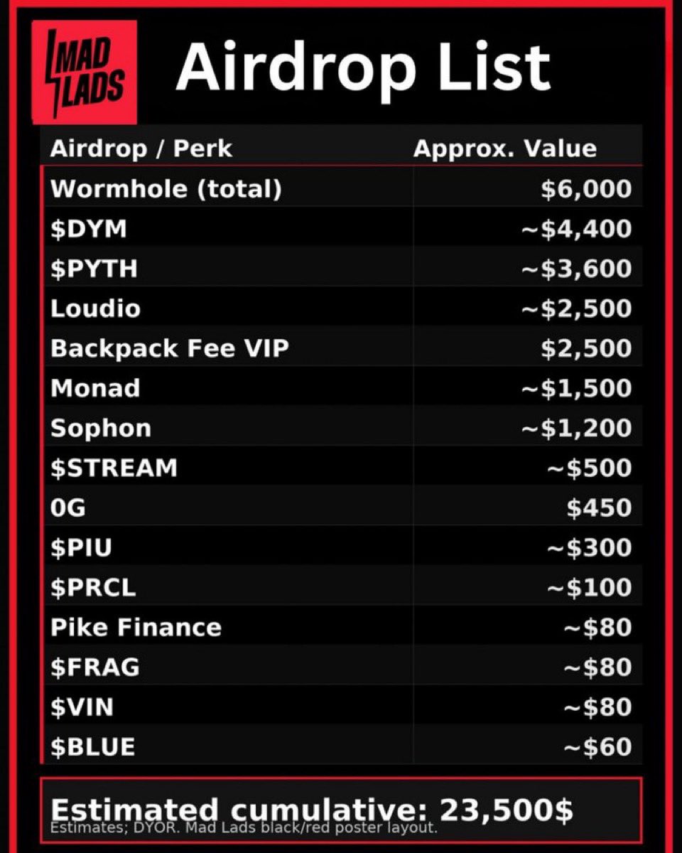 it’s hard to justify complaints from MadLads holders considering the number of airdrops they’ve received DYM, Wormhole, and several others airdrops which already delivered significant value.