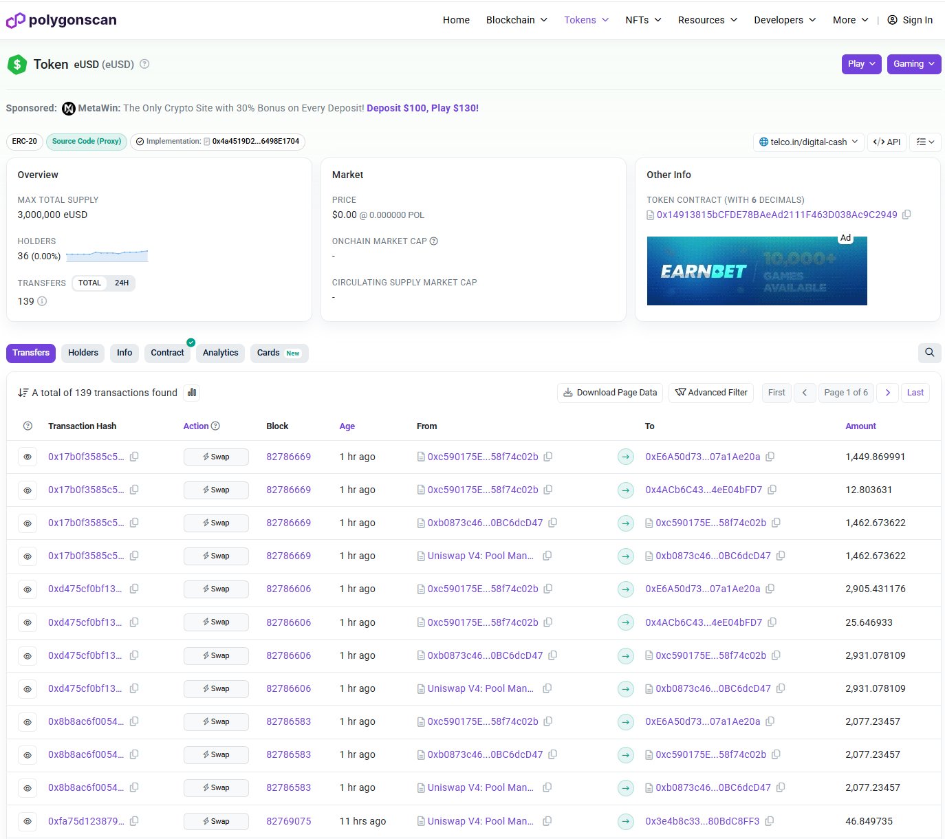 $eUSD on @0xPolygon by @Telcoin gained 1 new holder and 11 new transactions in the past hour.