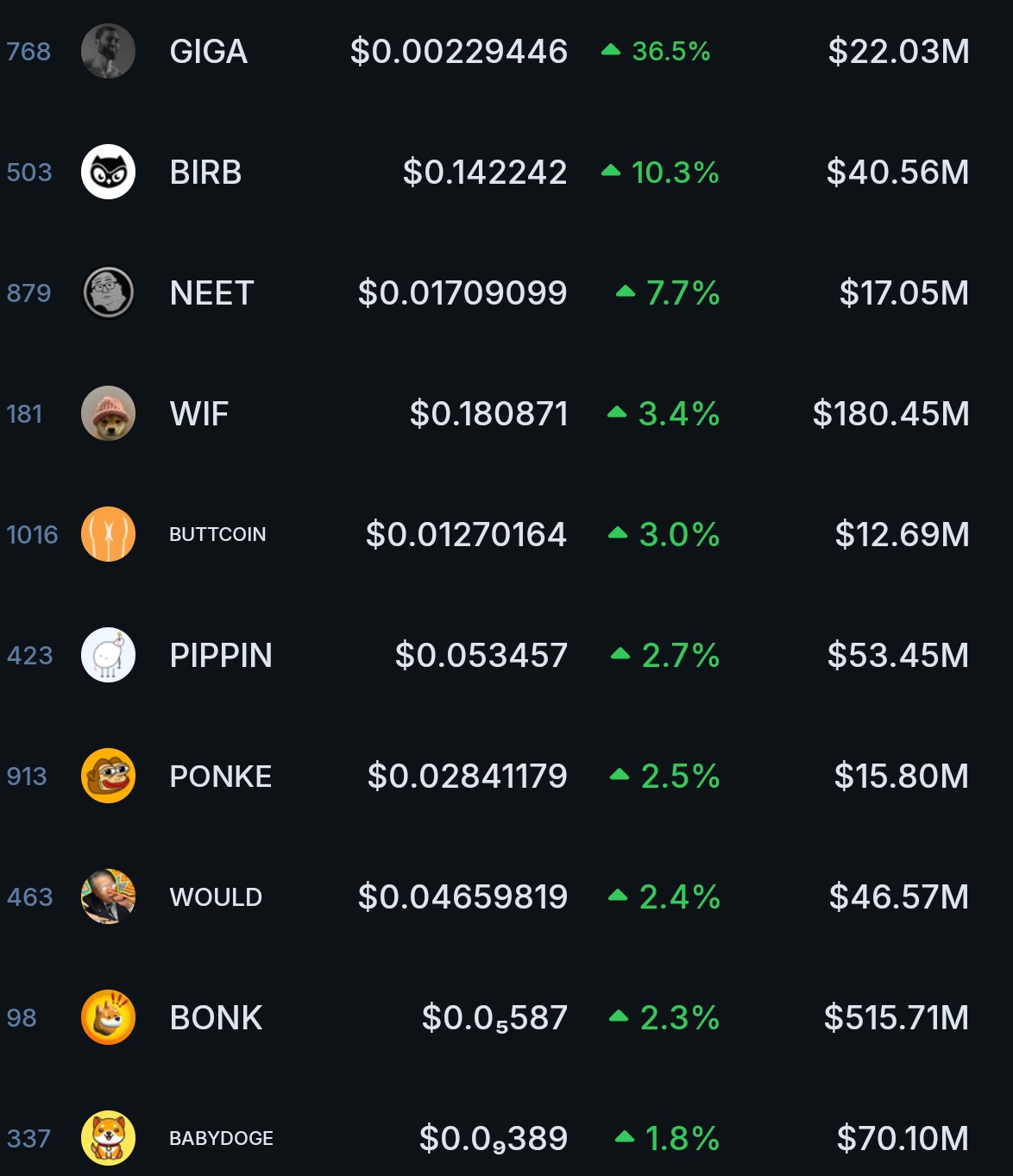 🚨 $GIGA (@gigachad) posts the biggest gains among the top 30 Solana memecoins in the past 24 hours. https://t.co/ScgwvGllBp