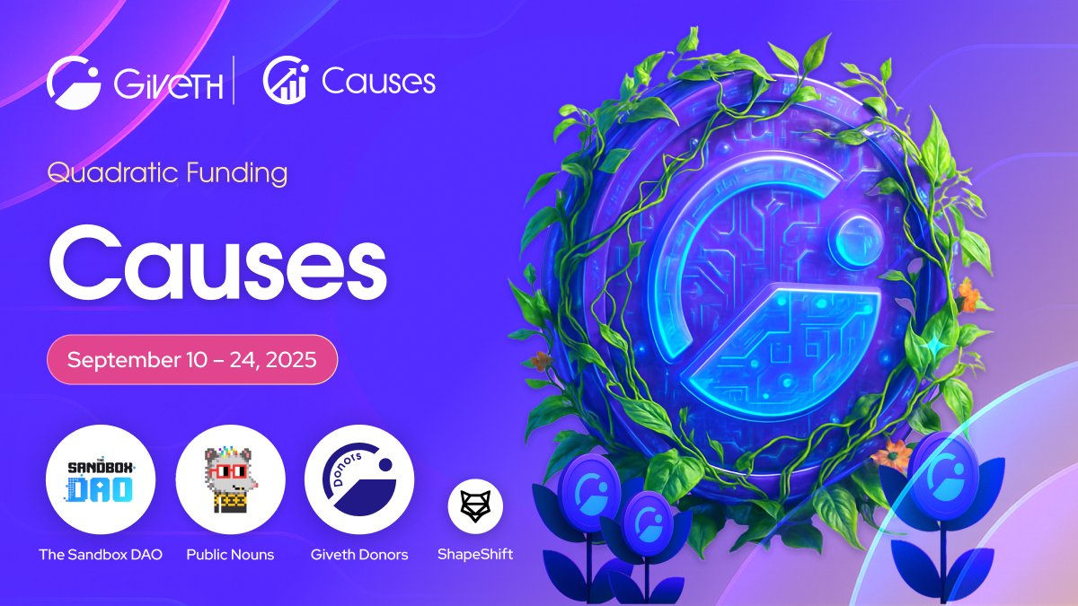 Giveth's Causes Quadratic Funding round has launched, allowing users to donate and receive amplified $GIV tokens.