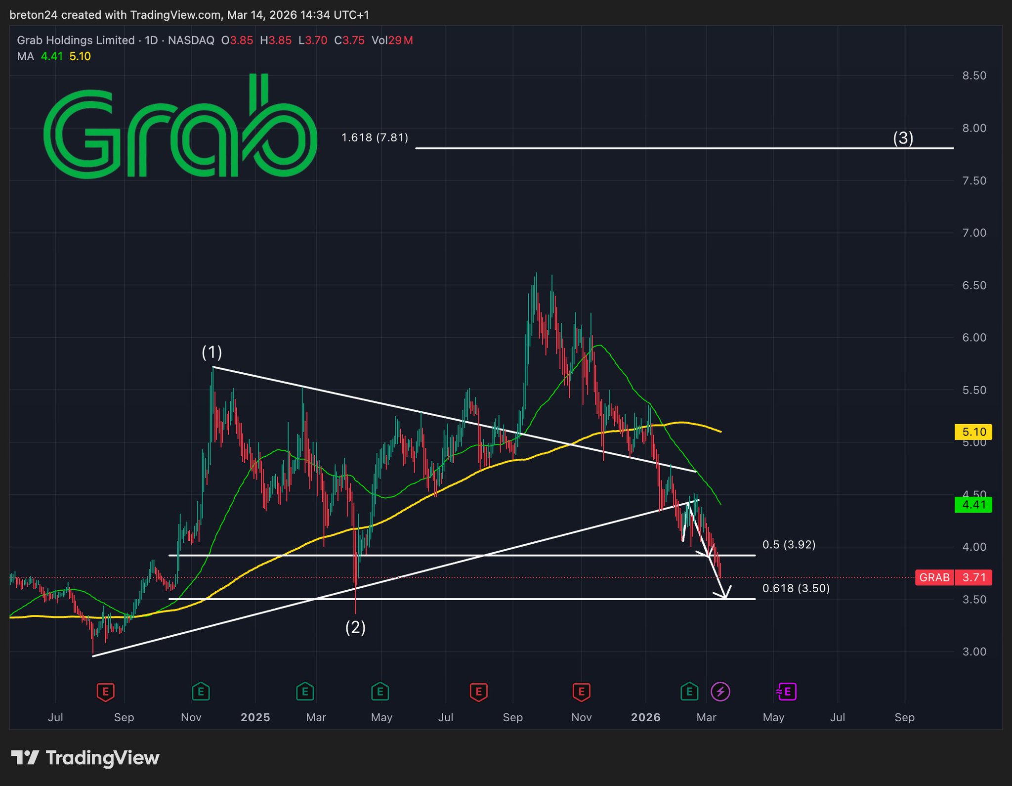 GRAB is falling as expected, target price $3.50.