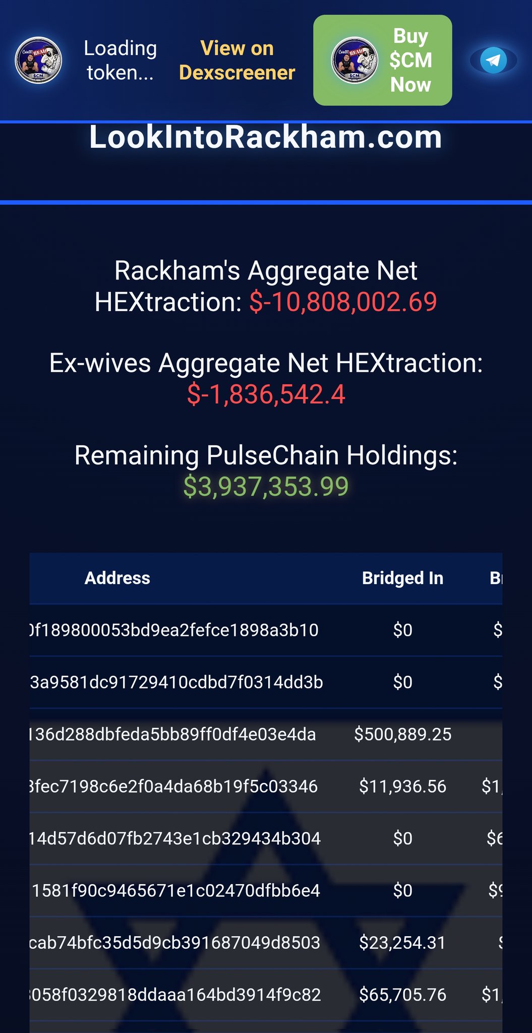 I posted a pic 12 hours ago showing the balance of wallets listed on 'Look into Rackham' app