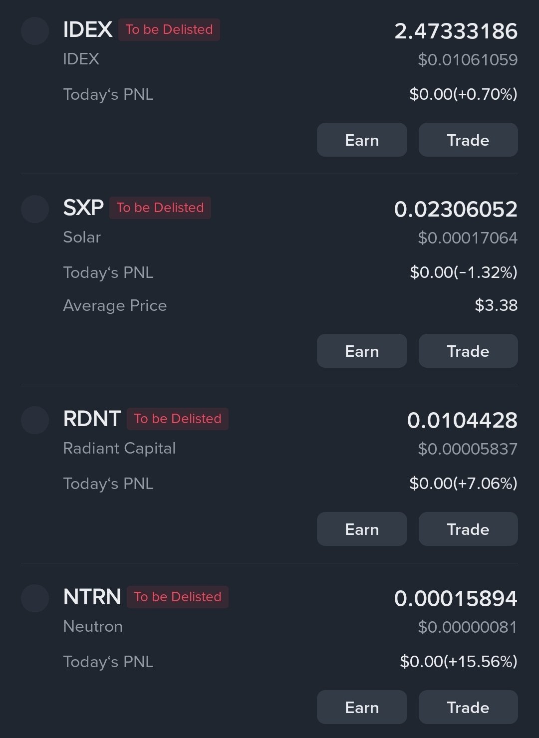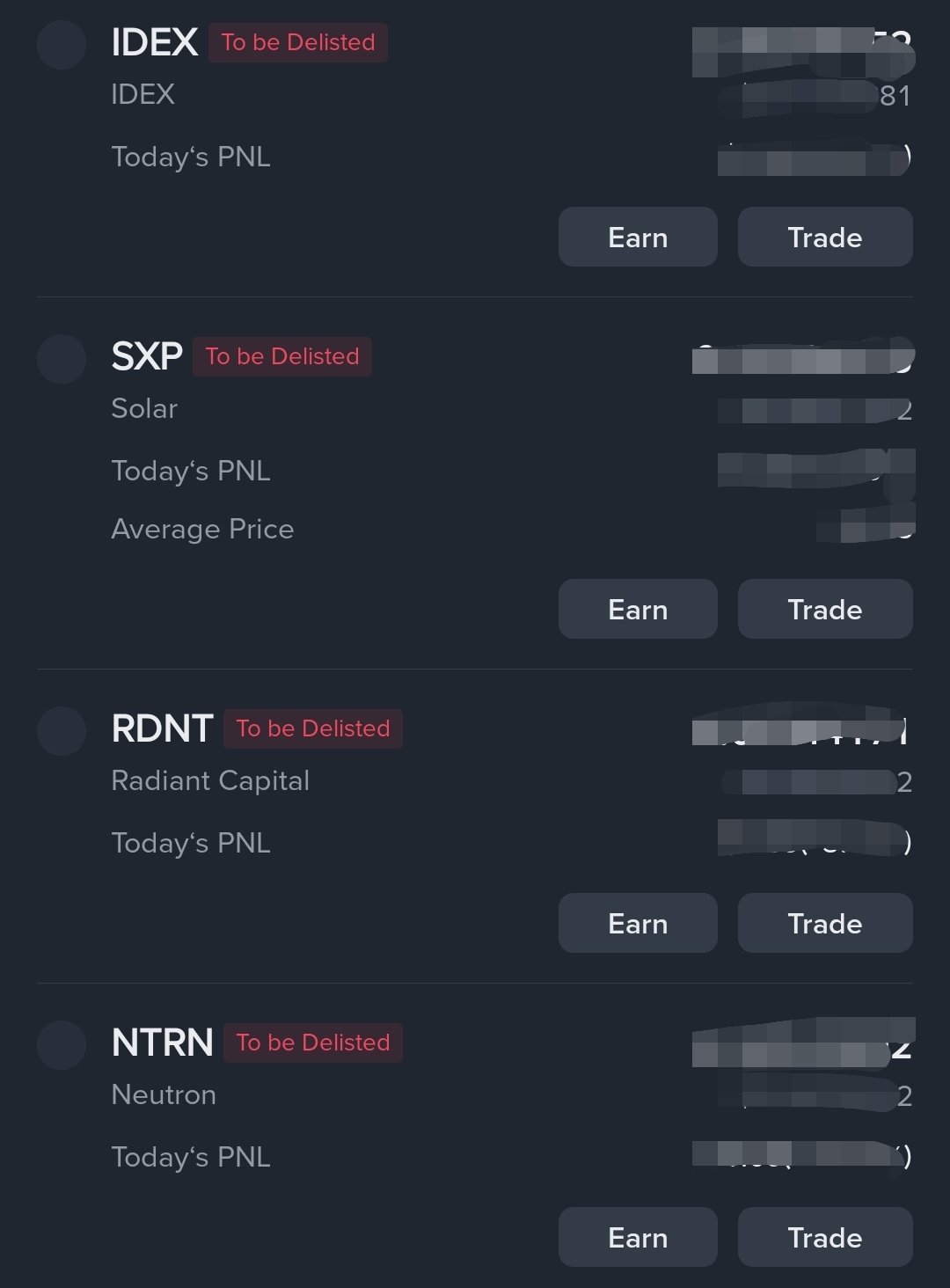 The author’s holdings of IDEX, SXP, RDNT, NTRN and other tokens were delisted by Binance, expressing despair about their investment ability.
