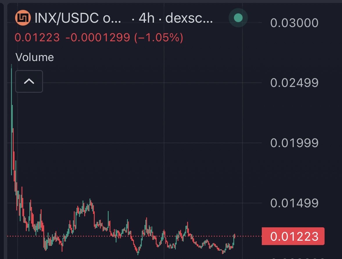 The INX token has remained sluggish in price after the TGE, and the project team has stayed silent, suggesting underperformance.