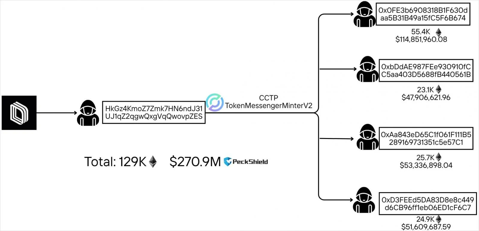 3, Drained more than 15 different tokens (JLP, SOL, USDC, etc.) within minutes (~$270–285M)