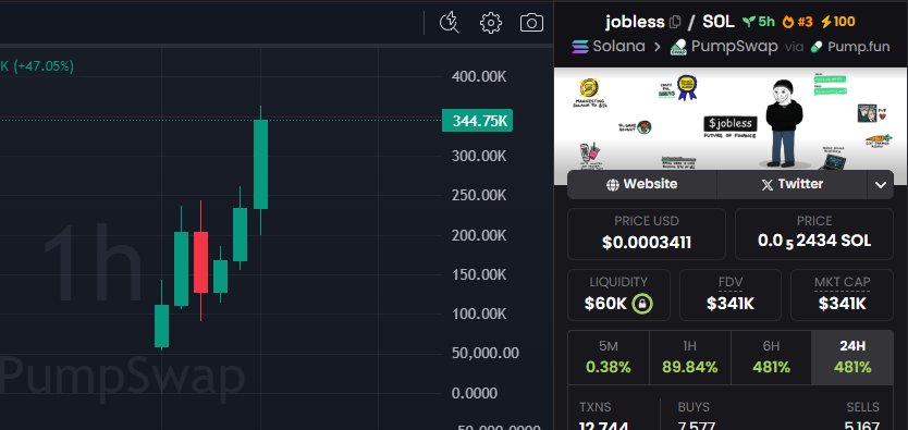 $jobless gains momentum after @vinhodler publicly linked the token to the '$useless' deployer, stating he "aped $jobless coin at 17k... deployed by $useless coin deployer which hit like 440m".