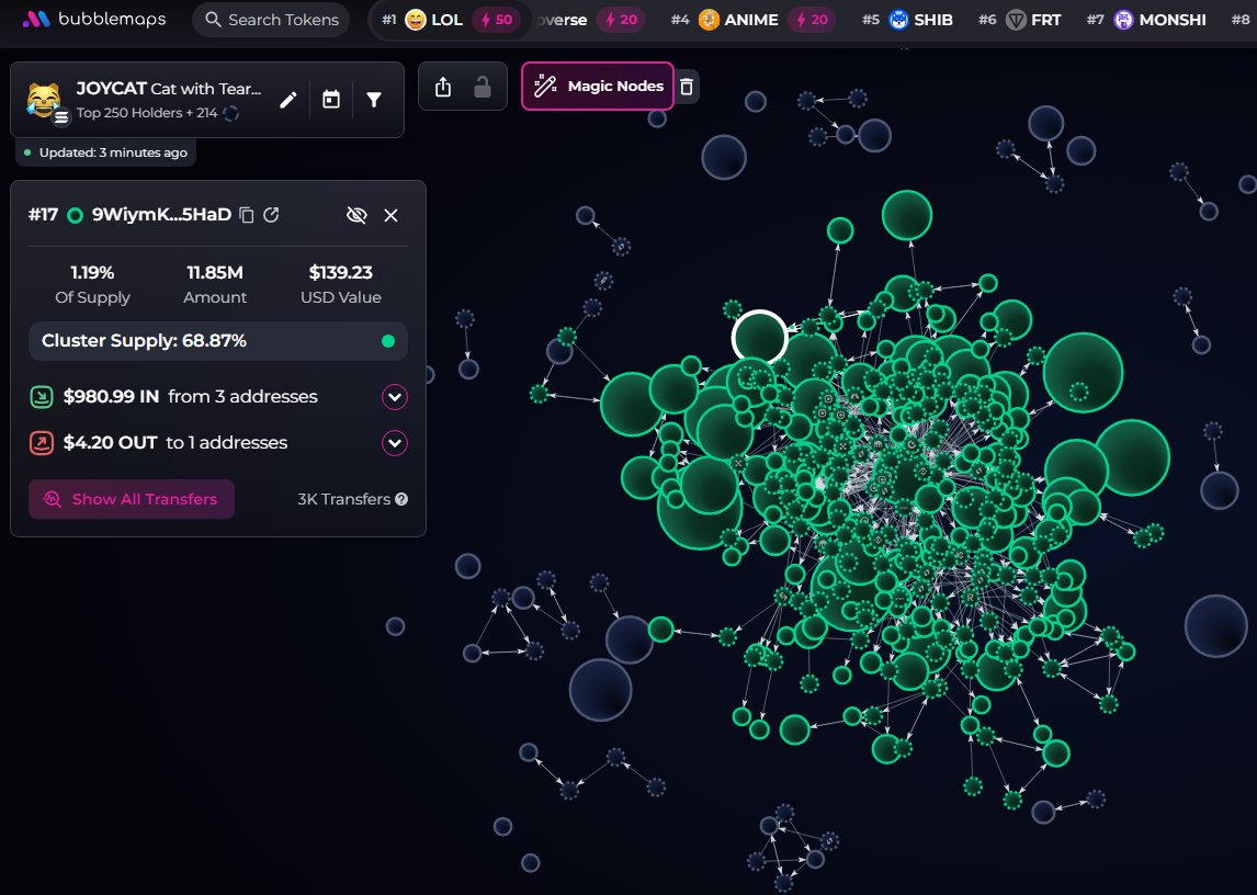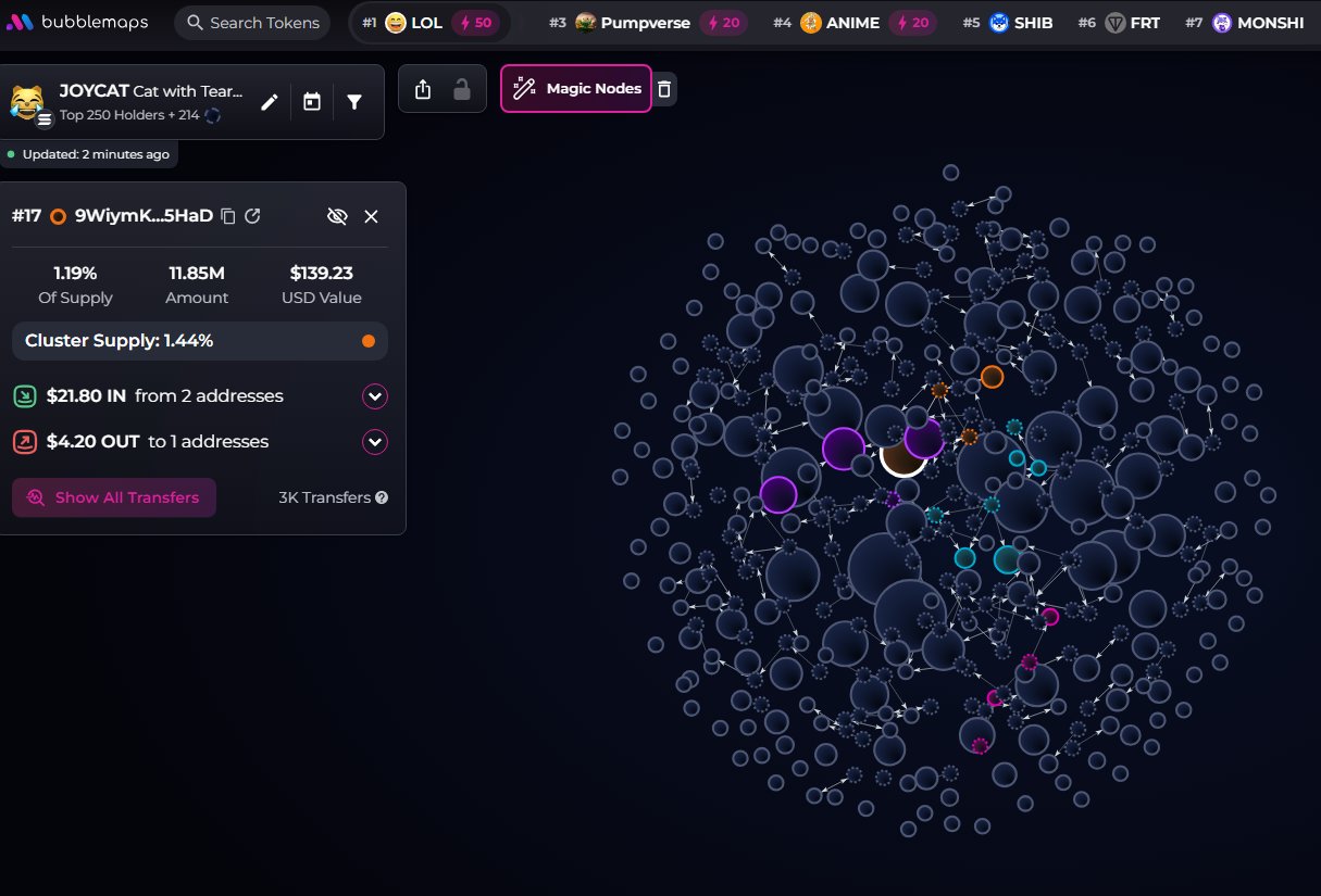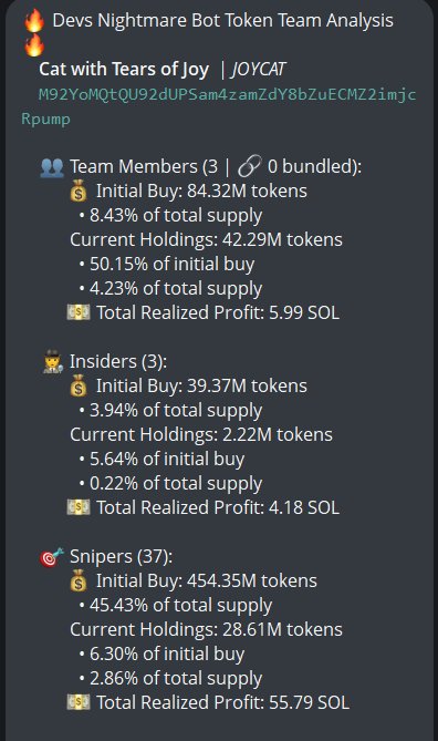 $JOYCAT (CA M92YoMQtQU92dUPSam4zamZdY8bZuECMZ2imjcRpump) doesn't have insiders, snipers have 2.85% per devsnightmare, team holds 4.2%. Azaadi 📚, Scharo, Tim, Moneytalks are top holders.
