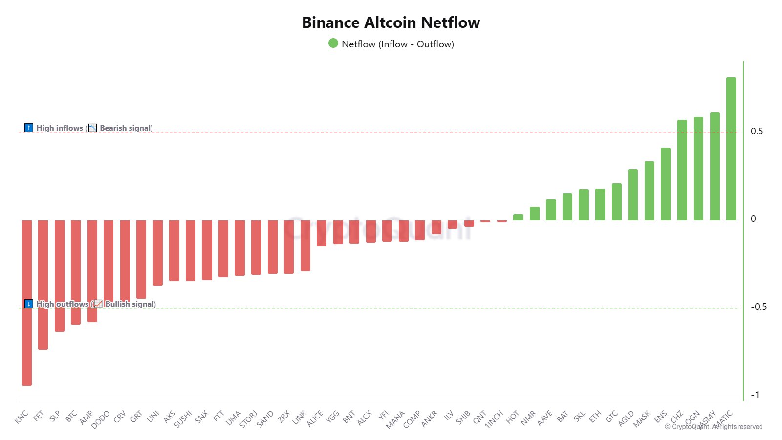 The coins saw outflows on Binance are $KNC, $FET, $SLP, $BTC, and $AMP. Outflows on exchanges are a bullish signal.